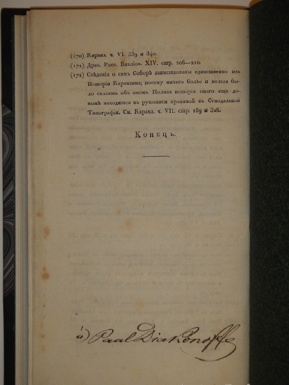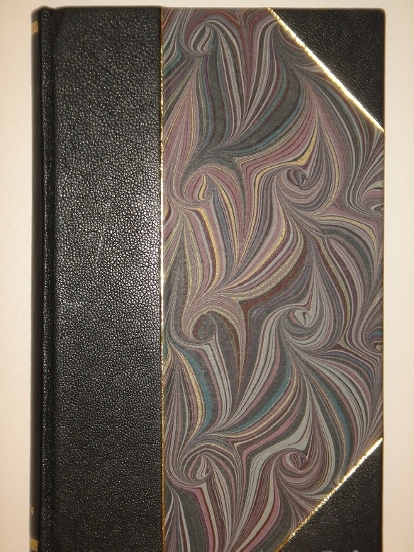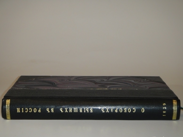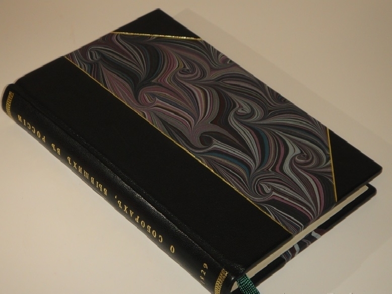 Книга в современном полукожаном владельческом переплёте с большими углами золотым тиснением на корешке. Крышки и форзацы оклеены бумагой под мрамор. Шёлковое ляссе.