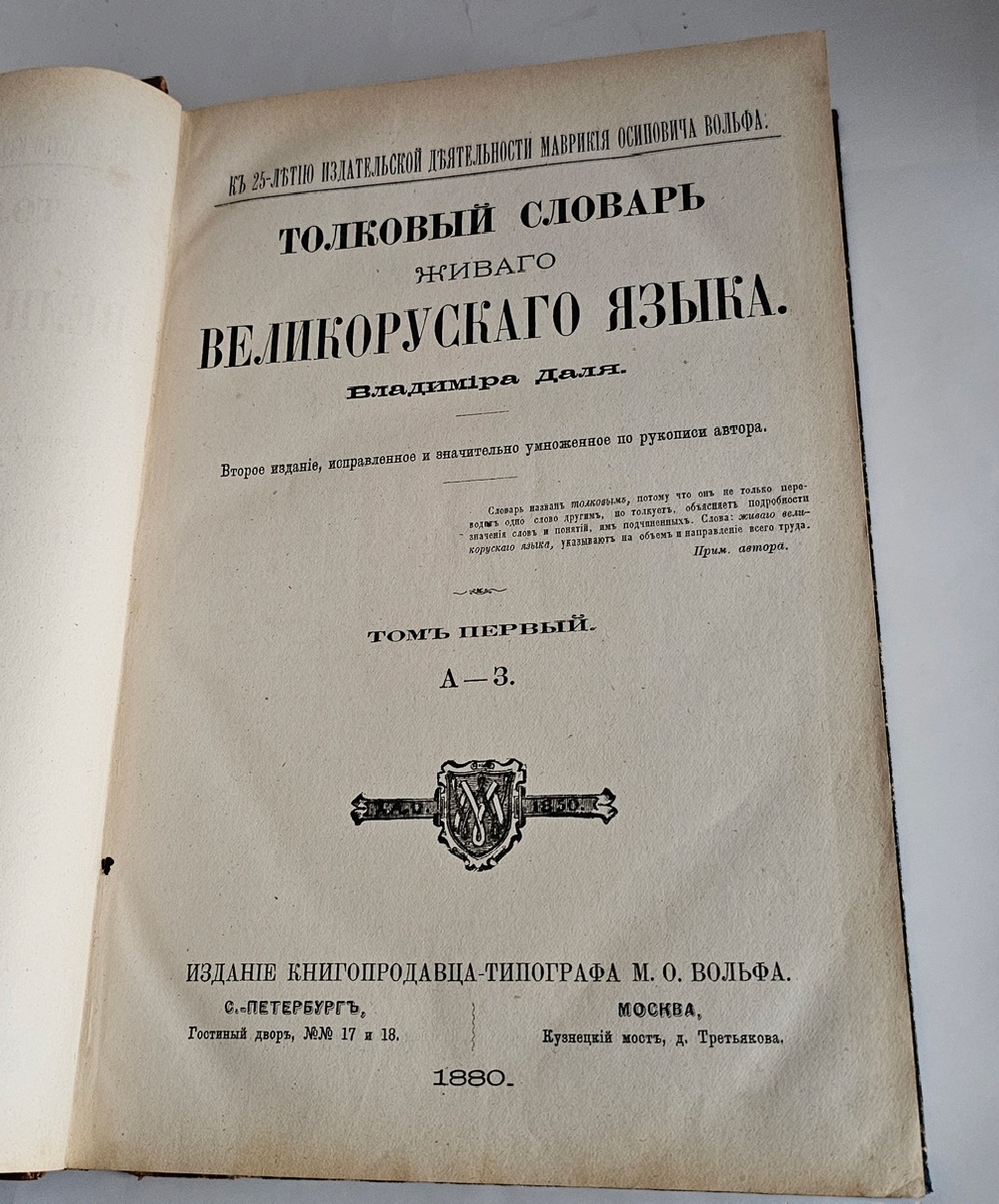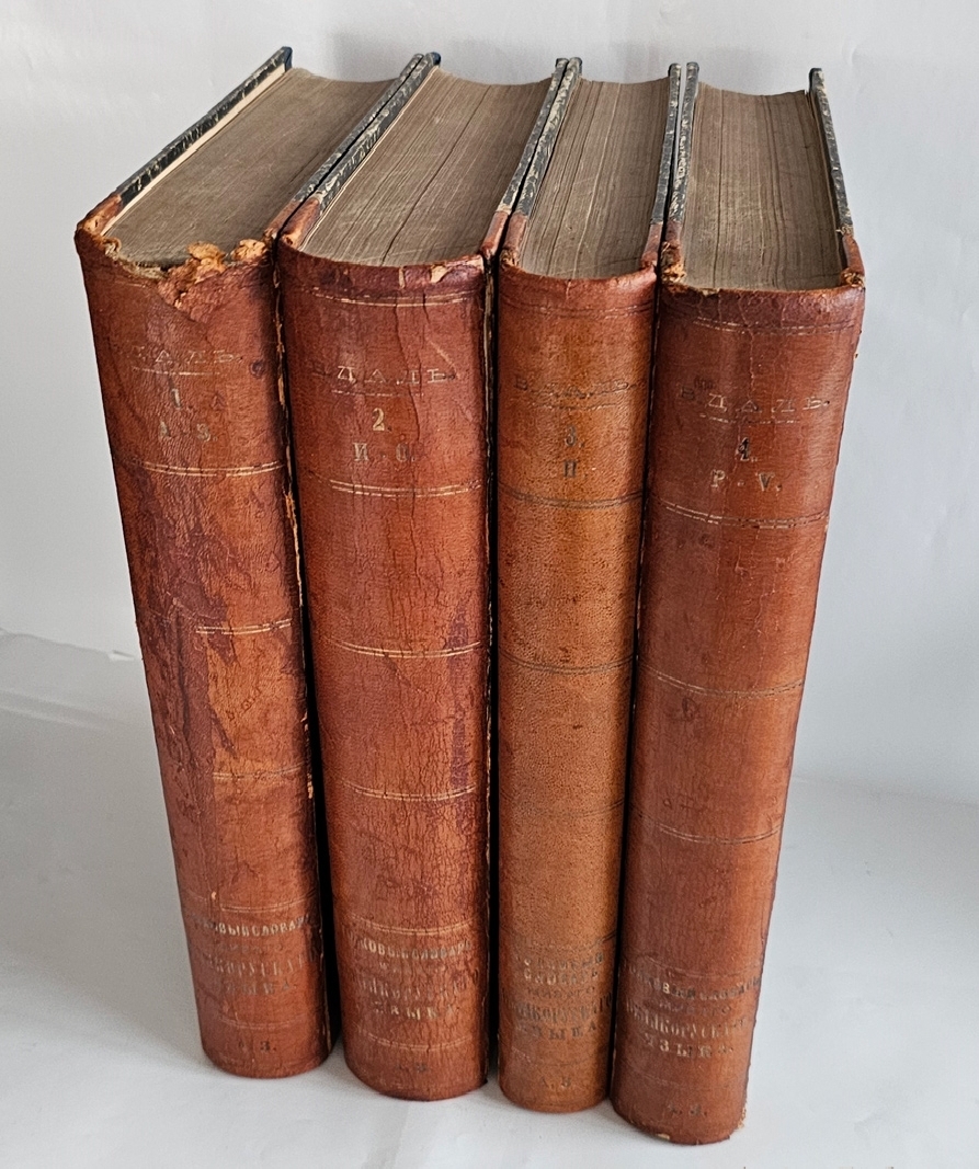 Владимир Иванович Даль (1801–1872) начал работу над словарём в 1819 году и трудился над ним более полувека. Первое четырёхтомное издание вышло в 1863–1866 годах. За этот труд Даль был награждён Ломоносовской премией Императорской академии наук и удостоен звания почётного академика.