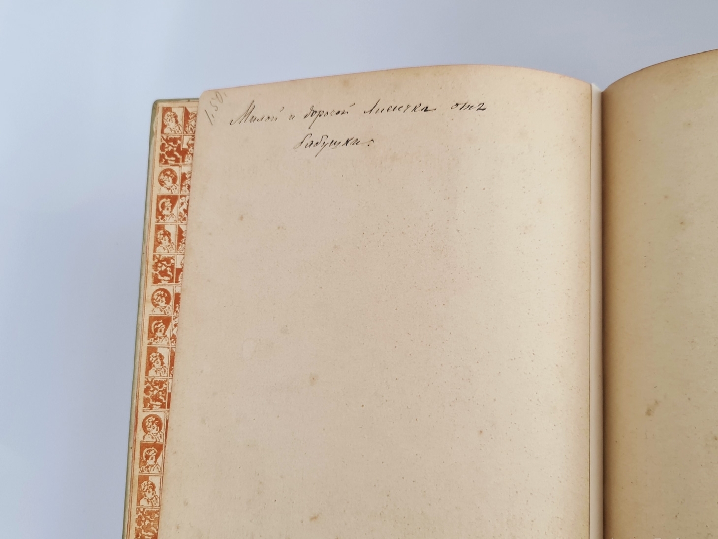 В издательском иллюстрированном картонажном переплете. Тематические форзацы. На обороте форзаце дарственная надпись. На титульном листе штемпельный экслибрис книжного магазина В.Е.Алексеева из Екатеринослава. Формат: 25.5x21 см., 102 стр. Плотная качественная бумага. Крупный шрифт. Сохранность отличная. Издание 1899 года, второе. Редкость.