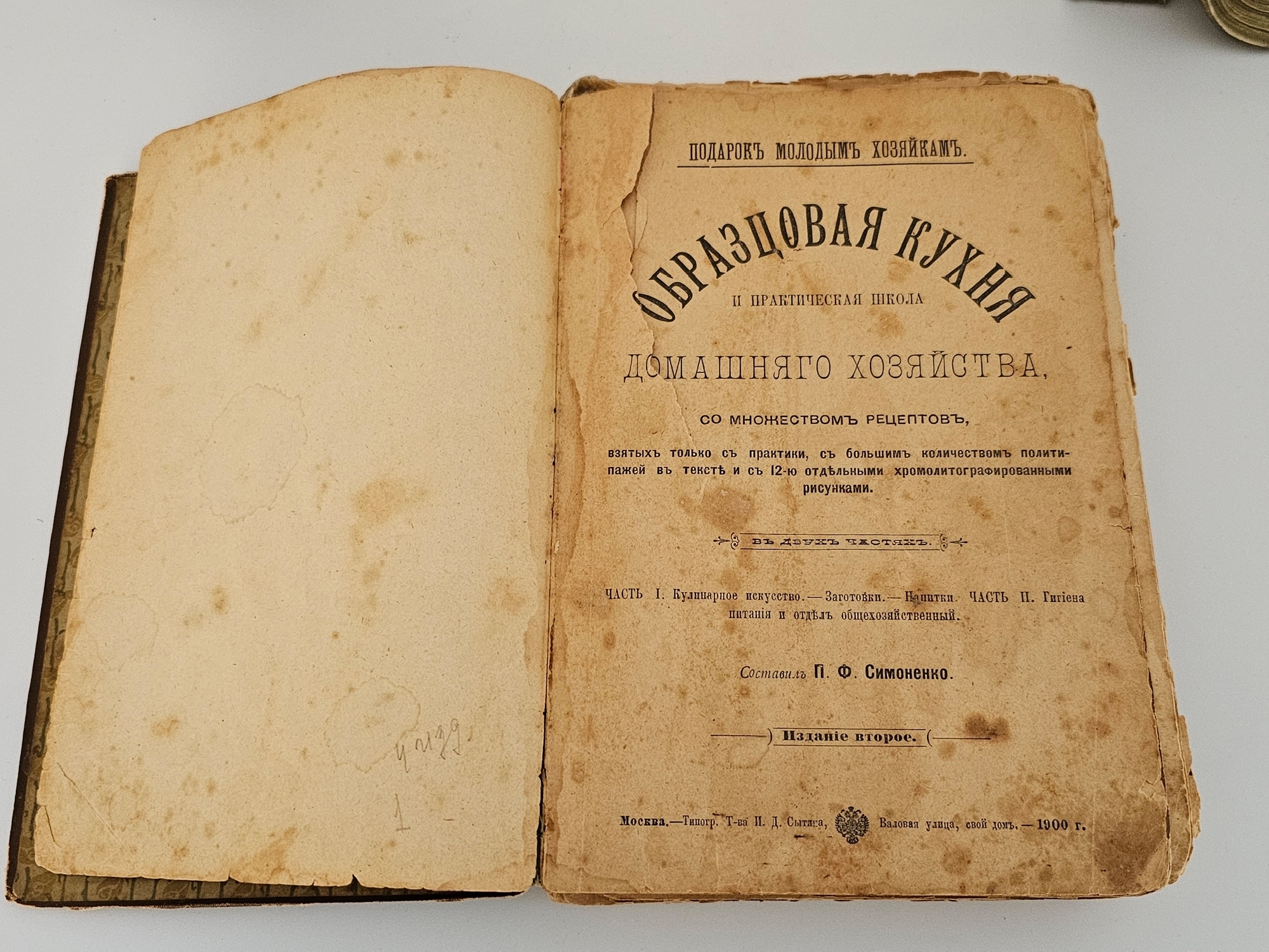 Книга П. Ф. Симоненко «Образцовая кухня и практическая школа домашнего хозяйства, со множеством рецептов, взятых только с практики» (Москва, типография товарищества И. Д. Сытина, 1900 год) — это обстоятельное руководство для хозяйки, соединяющее кулинарные рецепты с практическими советами по ведению домашнего хозяйства.