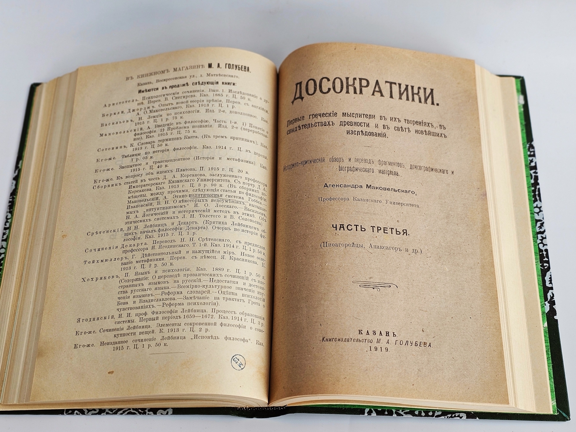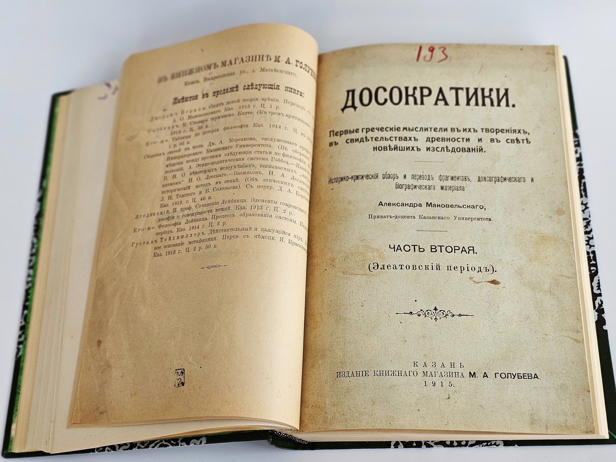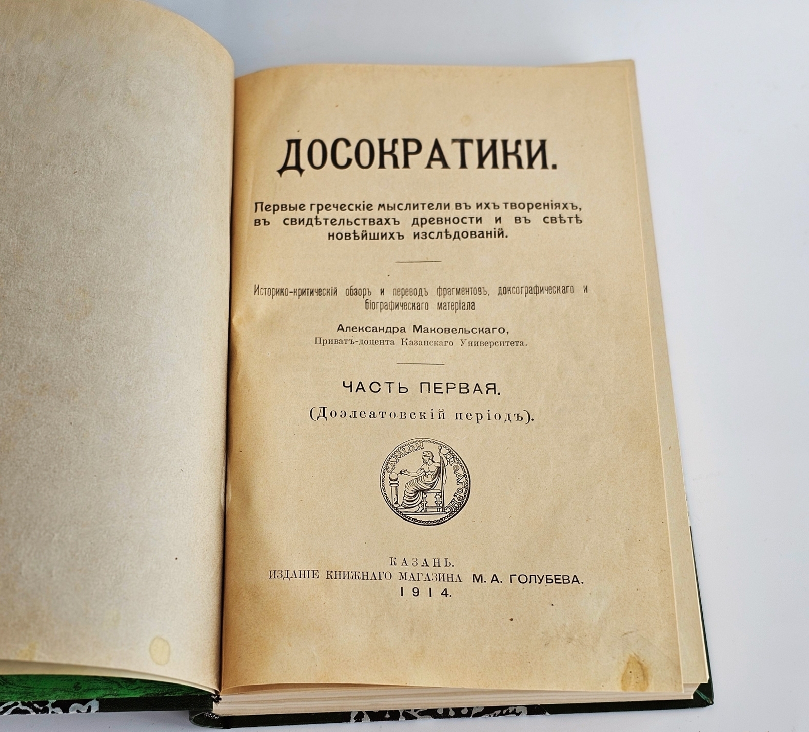 Для того чтобы сделать материалы, содержащиеся в труде Дильса доступными более широкому кругу русских читателей, автор предпринял в свое время перевод ` на русский язык. Этот перевод был выполнен с 3-го изд. `Фрагментов` и издан в трех частях под заглавием `Досократики`: Ч.1- Доэлеатовский период, Ч.2 - Элеатовский период, Ч.3 - Пифагорейцы, Анаксагор и др. Для русских читателей, не знающих древних языков, Досократики` в течение нескольких десятилетий служили своего рода эрзацем Дильса. Популярности `Досократиков` способствовало то обстоятельство, что каждому сколько-нибудь значительному философу в русском издании предшествовала статья, содержавшая краткое изложение соответствующего учения вместе с обзором его важнейших интерпретаций.