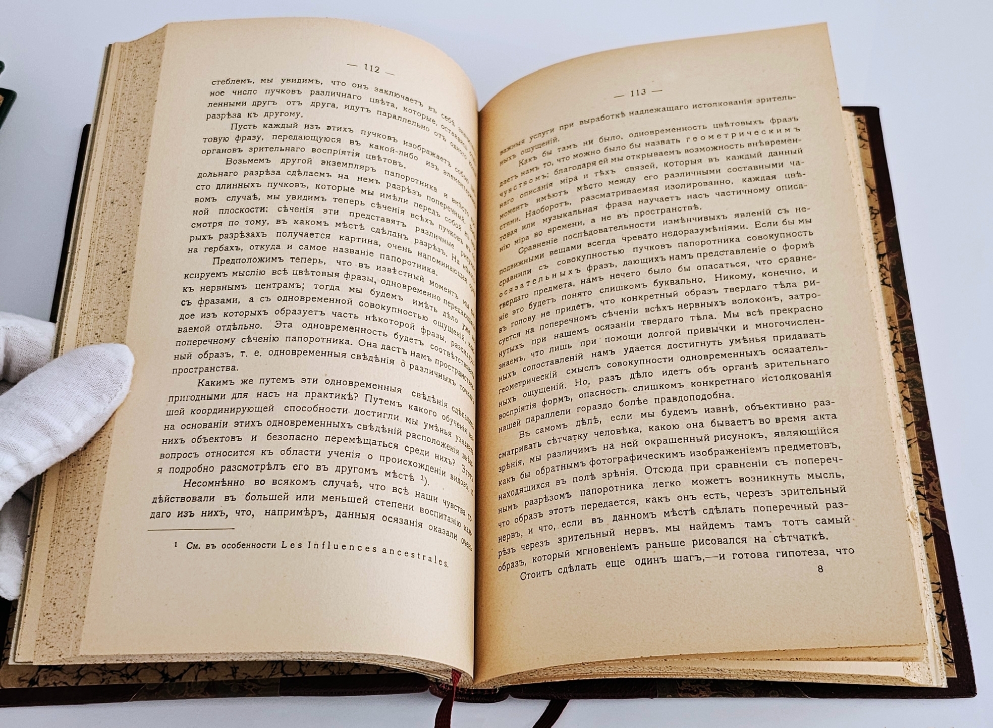 Книга в красивом полукожаном подарочном переплёте, с сохранением передней части издательской обложки. Красивые форзацы. VI, 234 стр., на страницах встречаются редкие пометы простым и цветным карандашом. Формат: 22×15 см. Состояние отличное.