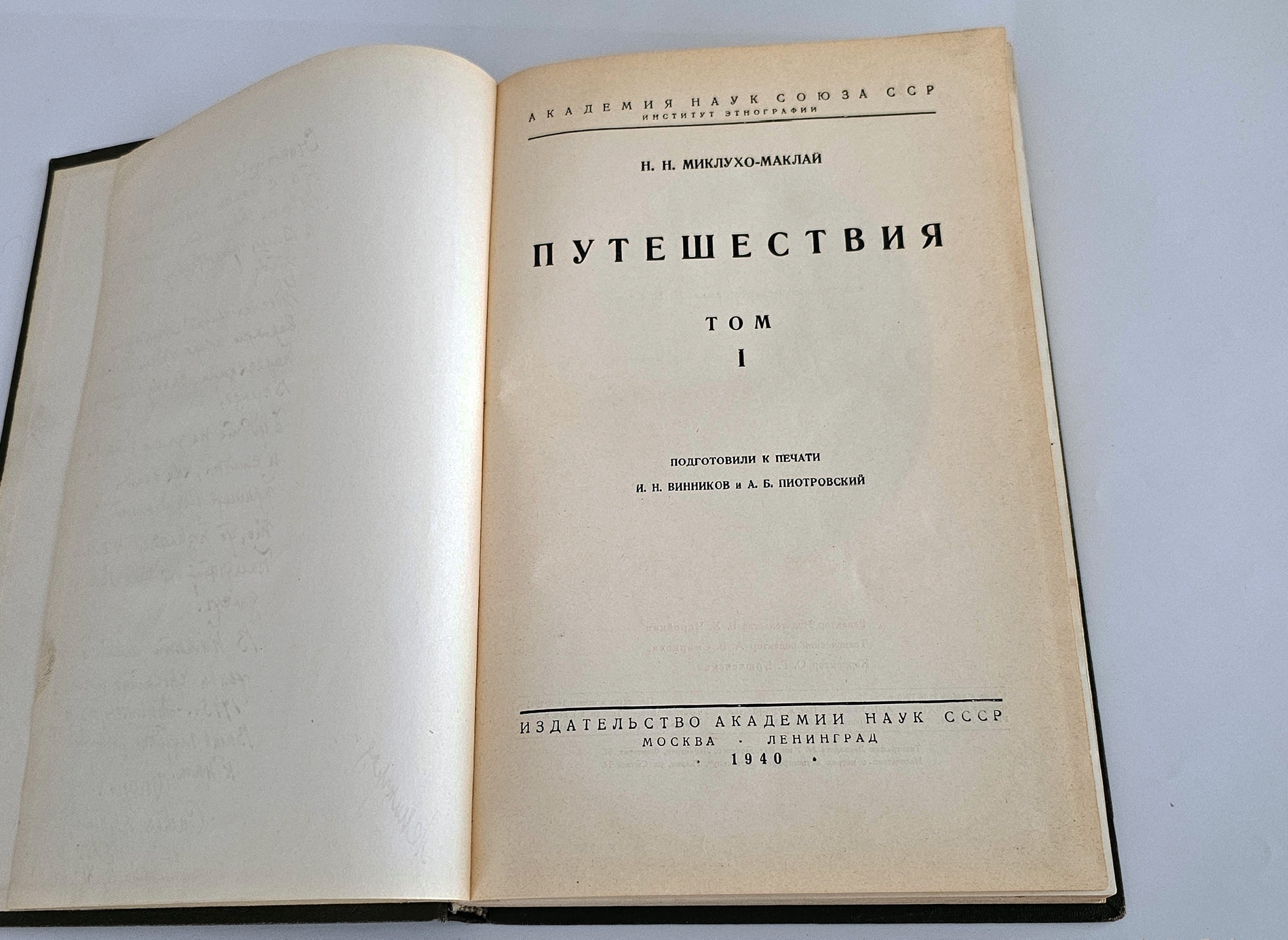 Подготовка этого издания была непростой задачей. Ещё в 1895 году Совет Русского географического общества поручил географу, антропологу и этнографу Д. Н. Анучину начать работу над дневниками и материалами Миклухо‑Маклая. Однако к началу XX века интерес к проекту угас, и в 1913 году Анучин объявил о прекращении работы. Лишь спустя почти три десятилетия, в 1940–1941 годах, удалось выпустить двухтомник.