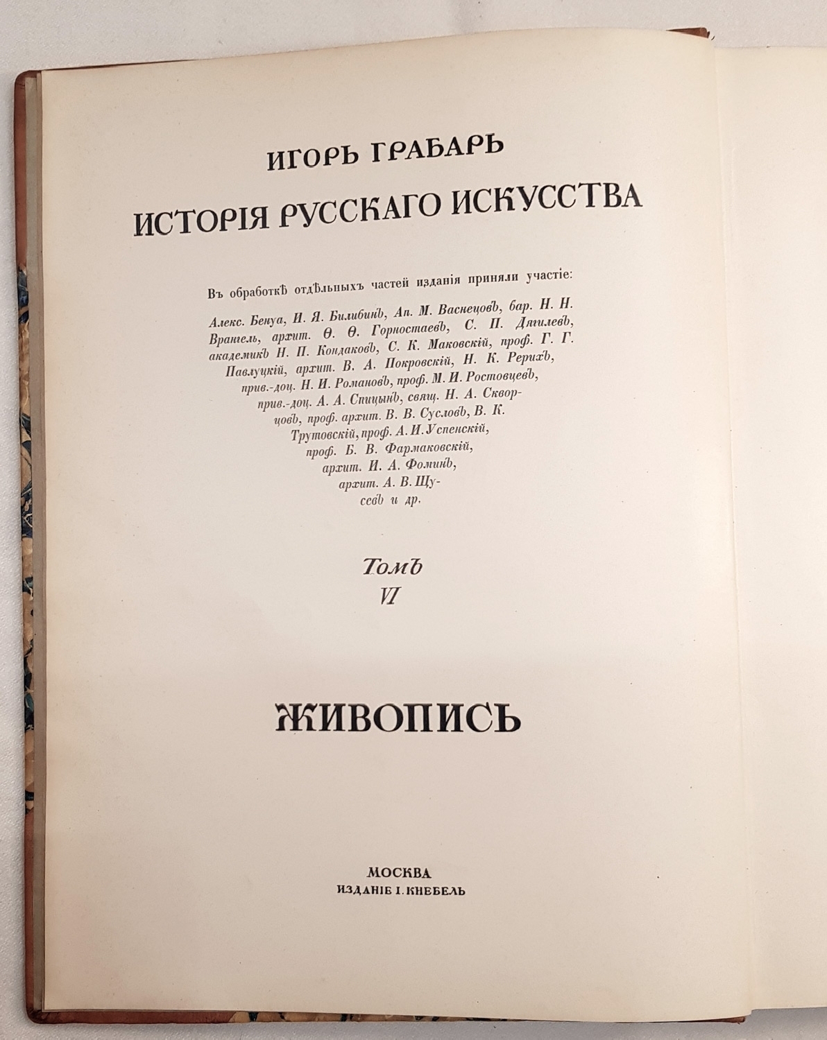 Для работы над этим фундаментальным трудом живописец, историк и теоретик искусства, реставратор и музейный работник Игорь Грабарь (1871-1960) привлек лучших знатоков того времени: над изданием работали Александр Бенуа, Иван Билибин, Аполлинарий Васнецов, Николай Врангель, Сергей Дягилев, Сергей Маковский, и многие другие знаменитые деятели искусства.Издание до сих пор остается самым полным собранием сведений и материалов по русской архитектуре, скульптуре и живописи.