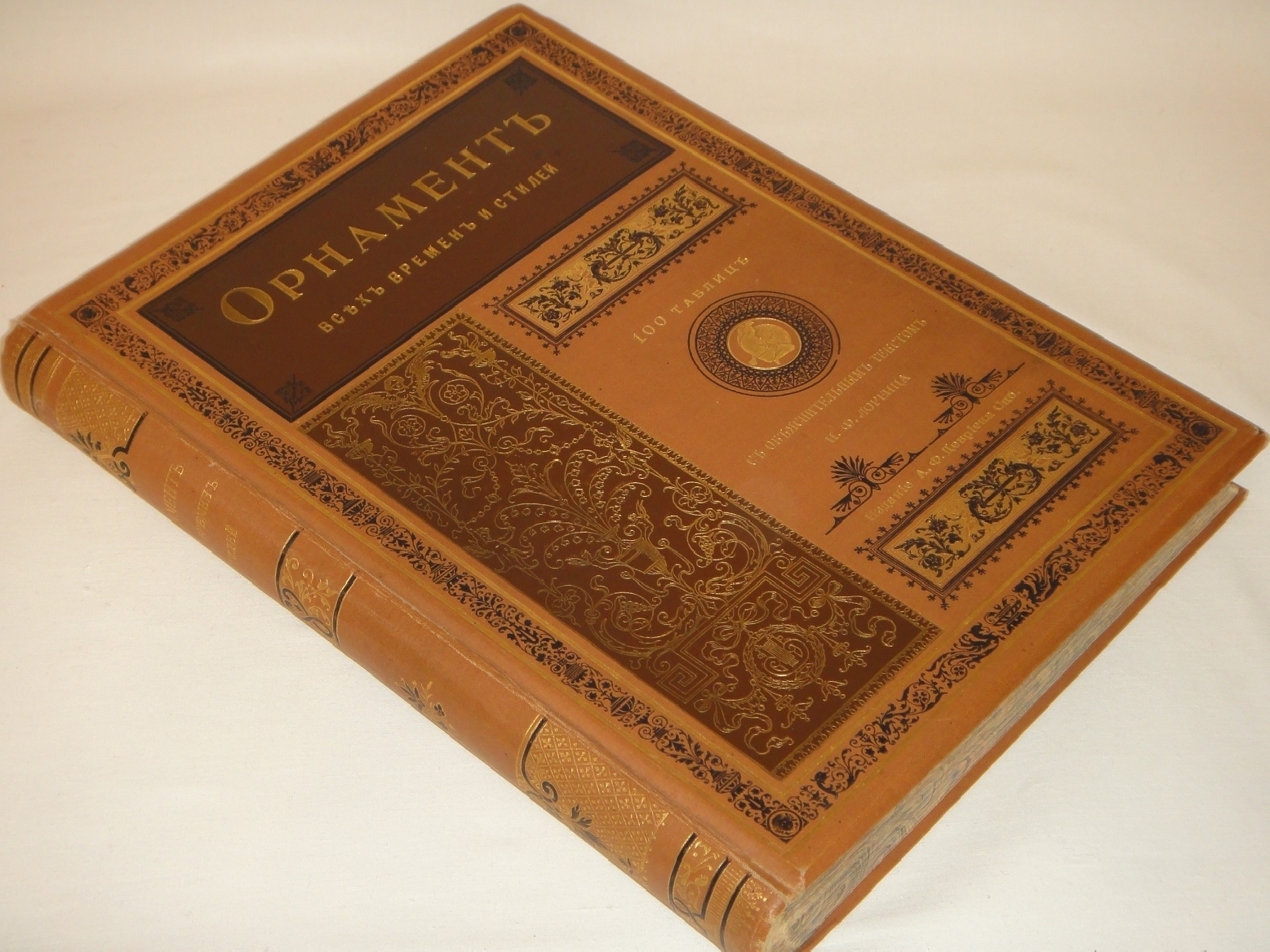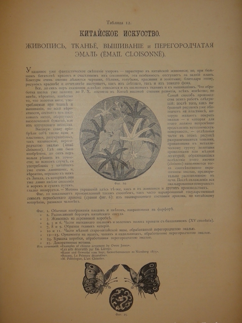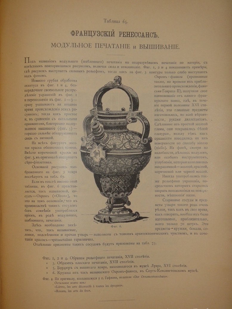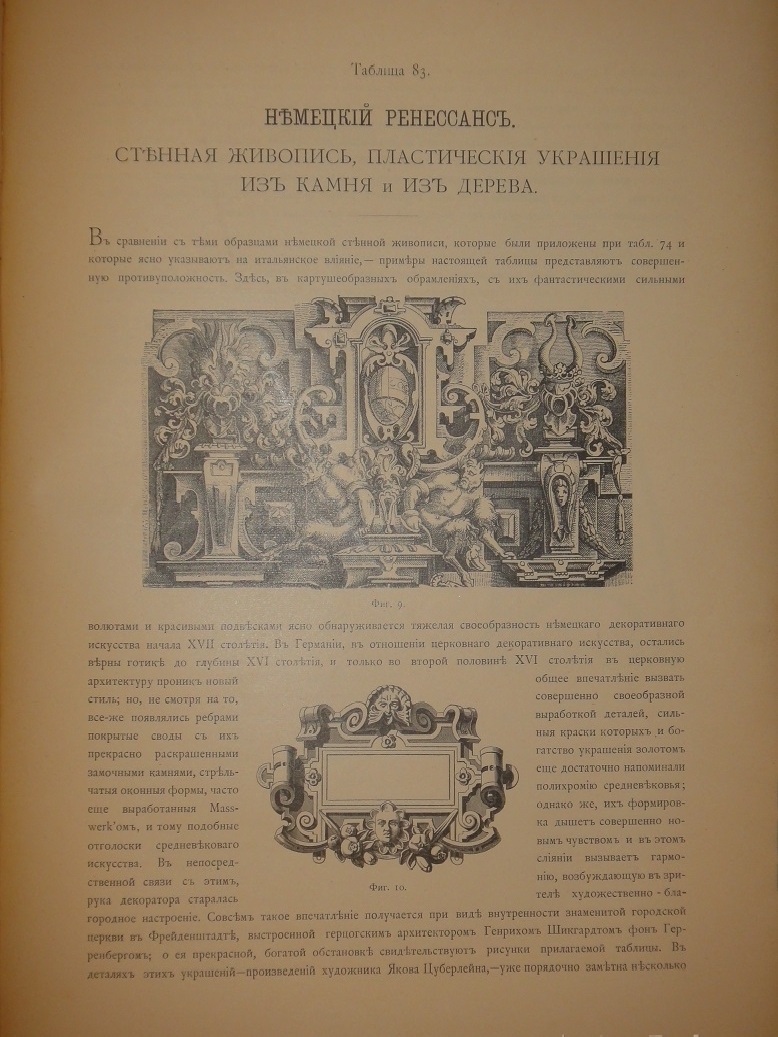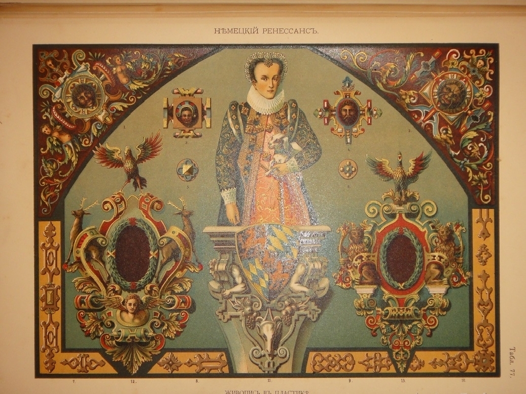 Сто хромолитографированных таблиц орнаментальных образцов всех художественных эпох дополнены подробными объяснениями выпускника Императорской Академии Художеств, выдающегося исследователя искусства и талантливого иллюстратора Николая Фёдоровича Лоренца ( 1863-1921 ). Хромолитографии высочайшего качества с сильными и сочными оттисками.