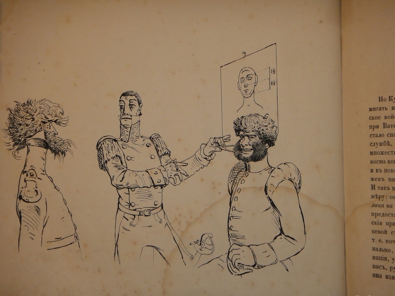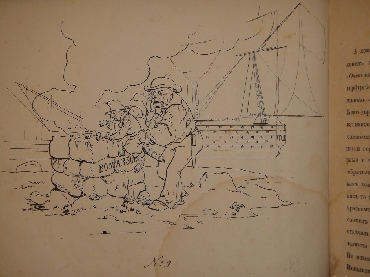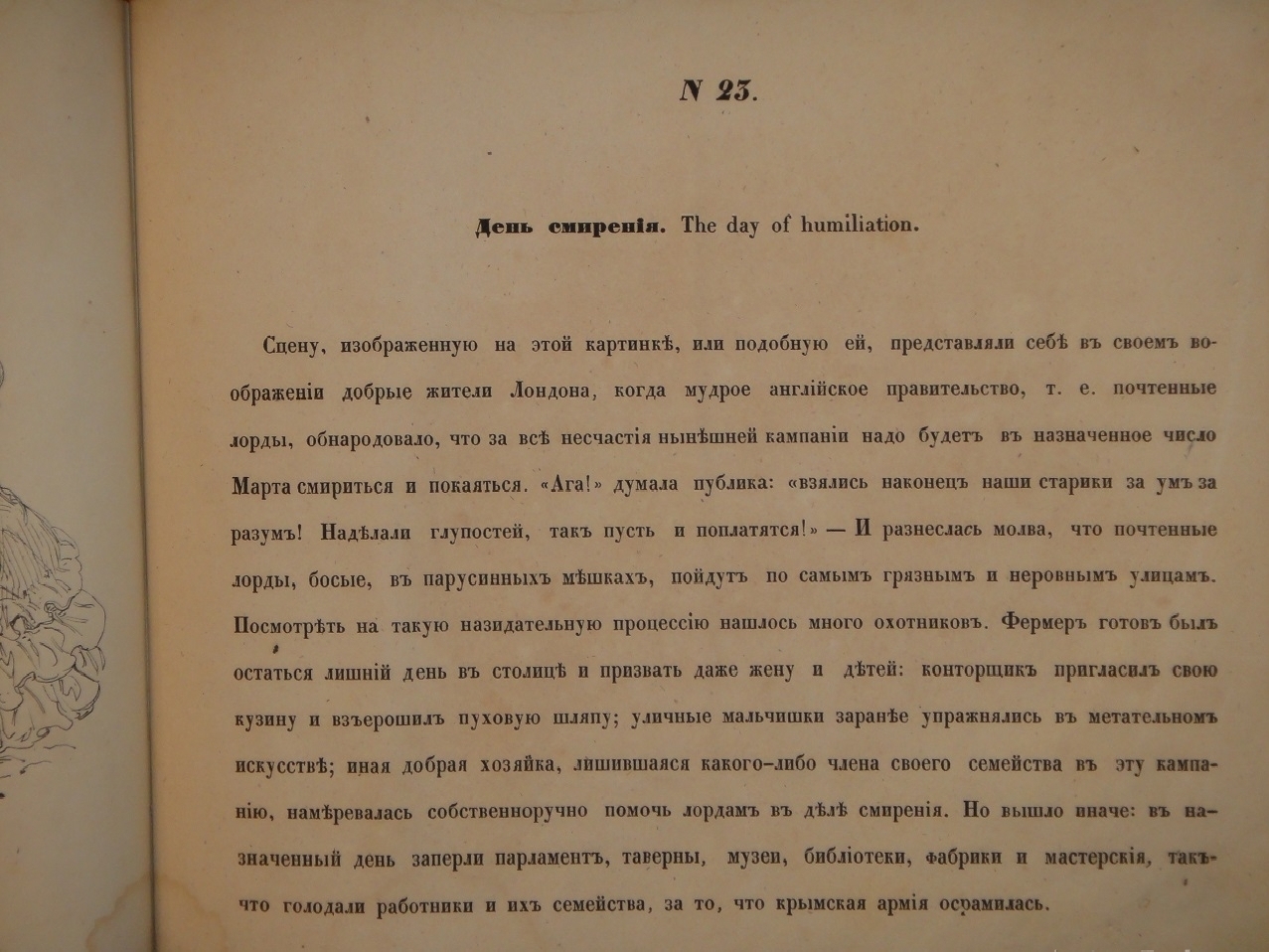 Издание содержит: титульный лист, 24 листа карикатур, выполненных очерковой гравюрой на камне с коротким подрисуночным комментарием на английском языке ( №№ 9, 17 и 22 без подписи ), и 24 листа одностороннего пояснительного текста на русском языке.