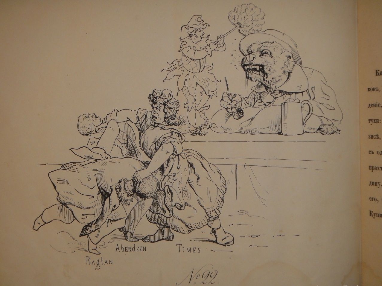 Во время Крымской кампании началась информационная атака на Россию. Формировался образ врага, дискредитация страны, публикация фальшивок. Именно карикатура стала одним из главных идеологических аргументов в Крымской войне. Россию стали изображать агрессивным, загнанным в угол зверем, на который охотятся и который должен сидеть в клетке, дабы мировое сообщество не стало жертвой его неуёмной ярости. В этой области преуспели английский журнал " Punch " и французское издание " Le Charivari ". Особенно ярыми русофобами слыли художники: Оноре Домье, Джон Тенниел, Джон Лич, Гюстав Доре.