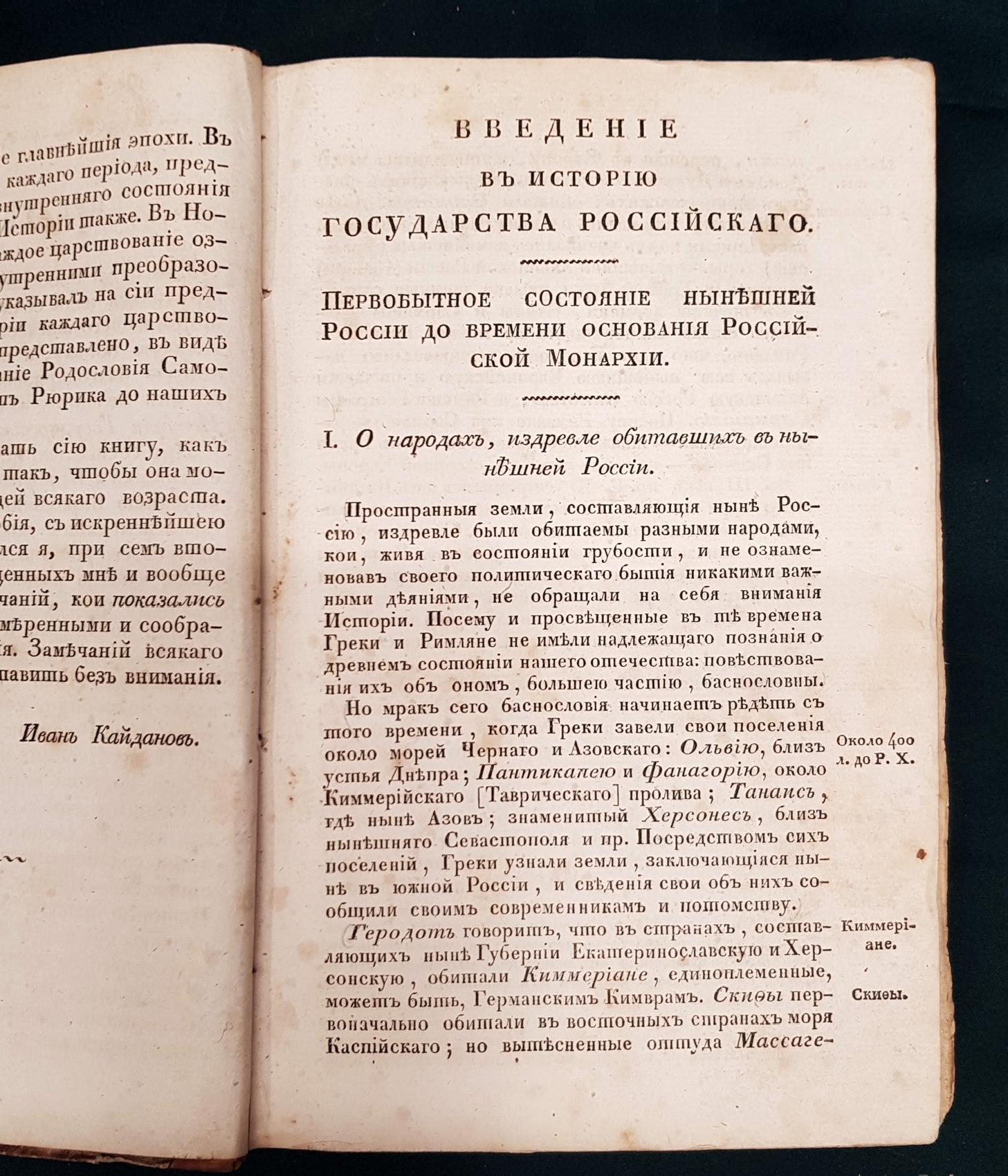Иван Кузьмич Кайданов (1782-1843) – наставник Пушкина, преподававший в Царскосельском лицее историю, географию и статистику. Окончив Киевскую духовную семинарию, Кайданов продолжил образование в Санкт-Петербургском педагогическом институте, затем прослушал полные курсы философии и истории в Геттингенском университете. Он издал несколько работ, посвященных всемирной и российской истории. Представленный труд Кайданова посвящен памяти Н.М. Карамзина, поскольку основным источником «Начертания» послужила карамзинская «История Государства Российского».