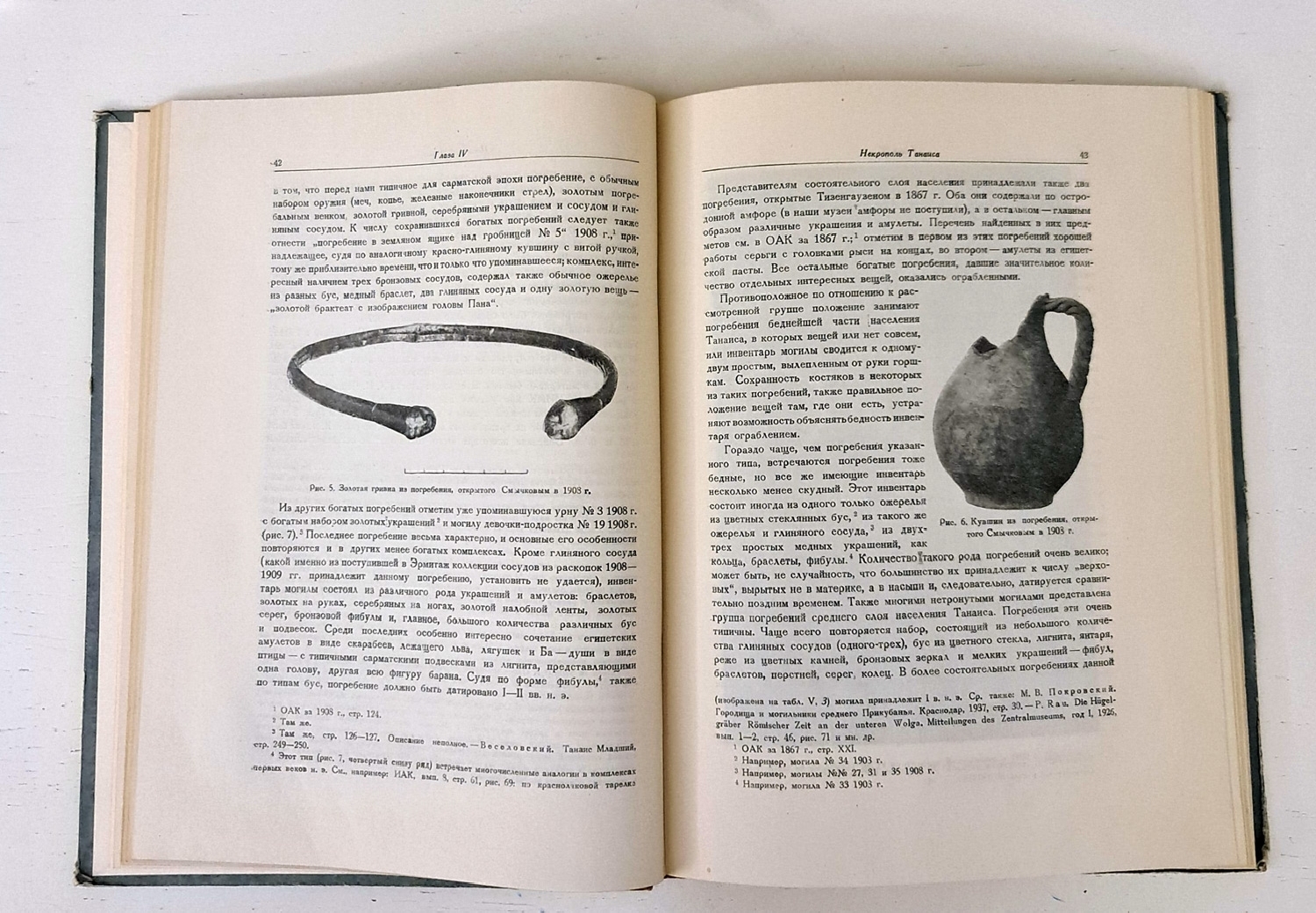 Краткий очерк истории археологических расследований городища у ст. Недвитовской, составляющий содержание особой главы, дает яркое представление о тех трудностях, которые стояли перед автором при изучении танаидского материала. Трудности эти, коренящиеся в несовершенстве методов полевой археологической работы прежних исследователей городища, заключаются прежде всего в том, что в отчетах о раскопках полностью отсутствует описание культурного слоя, фиксация стратиграфии напластований городища, разделение материала некрополя по могильным комплексам, характеристика массового обиходного материала. Все это лишило автора возможности дать связный очерк истории Танаиса и по необходимости заставило ограничиться изучением и характеристикой отдельных групп и категорий памятников.