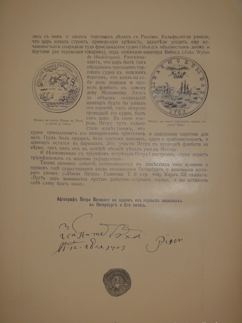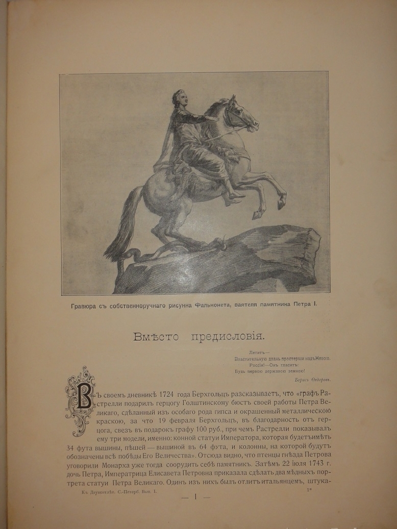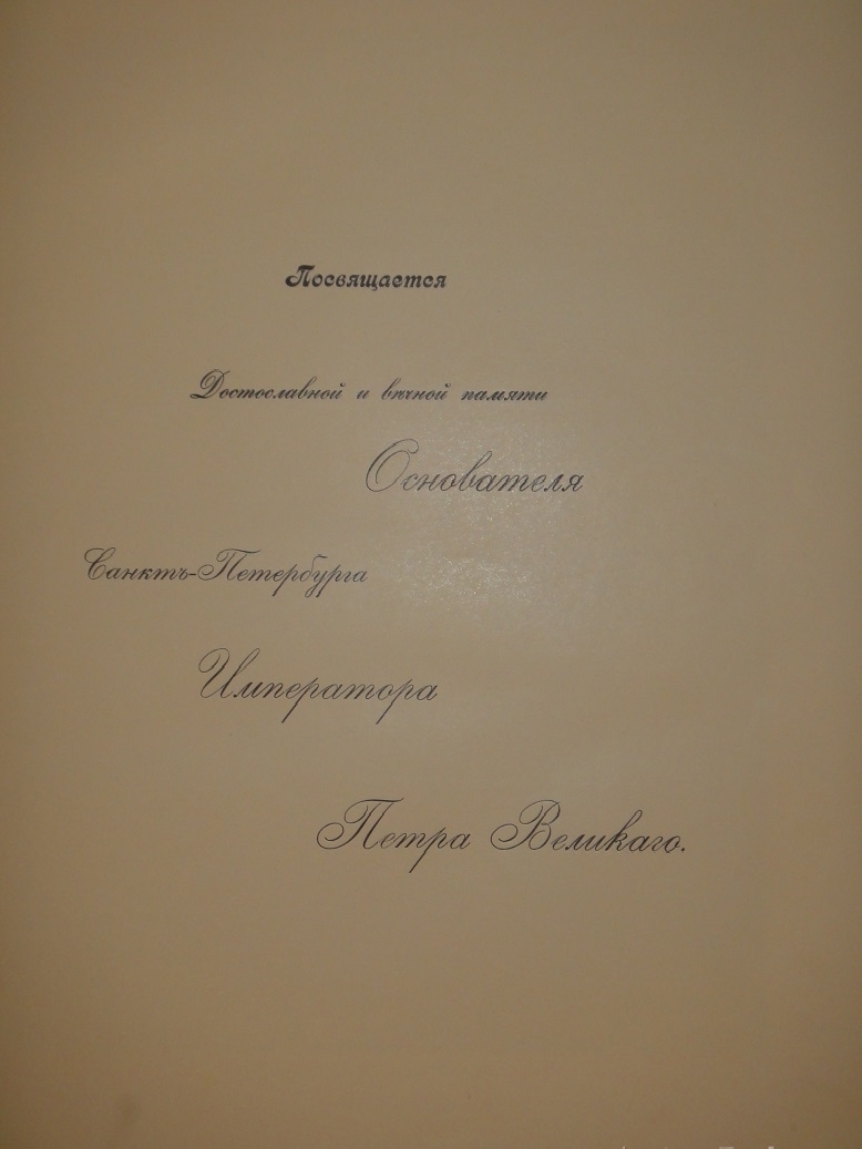 С посвящением автора — Достославной и вечной памяти Основателя Санкт-Петербурга Императора Петра Великого.