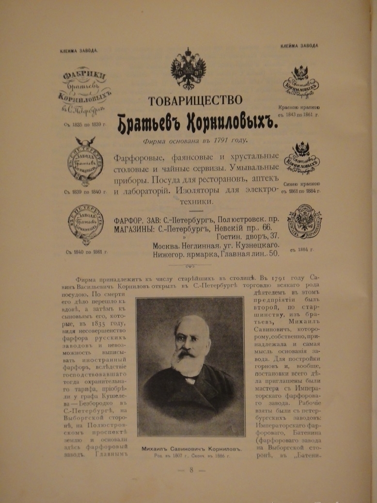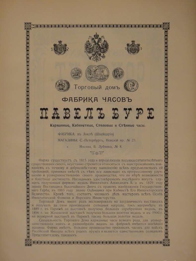 Ценность издания в значительной степени увеличивается благодаря размещённым в конце книги подробным сведениям о крупных предприятиях, которые появились к началу XX века в Санкт-Петербурге ( Товарищество Братьев Корниловых, Поставщик Высочайшего Двора Торговый дом " Фабрика часов Павел Буре ", Торговый дом " Шёлковых материй Погребовых " и мн. др. ). Эти данные дополнены художественно оформленными фотографиями.