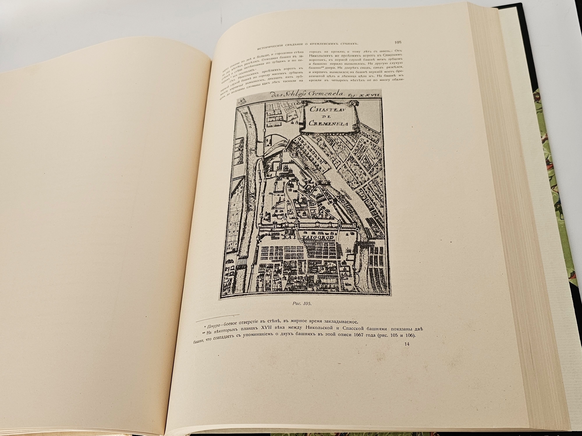 Содержит: историческую схему Московского Кремля в красках и 359 рисунков, из которых три в красках, и шесть планов на отдельных листах.