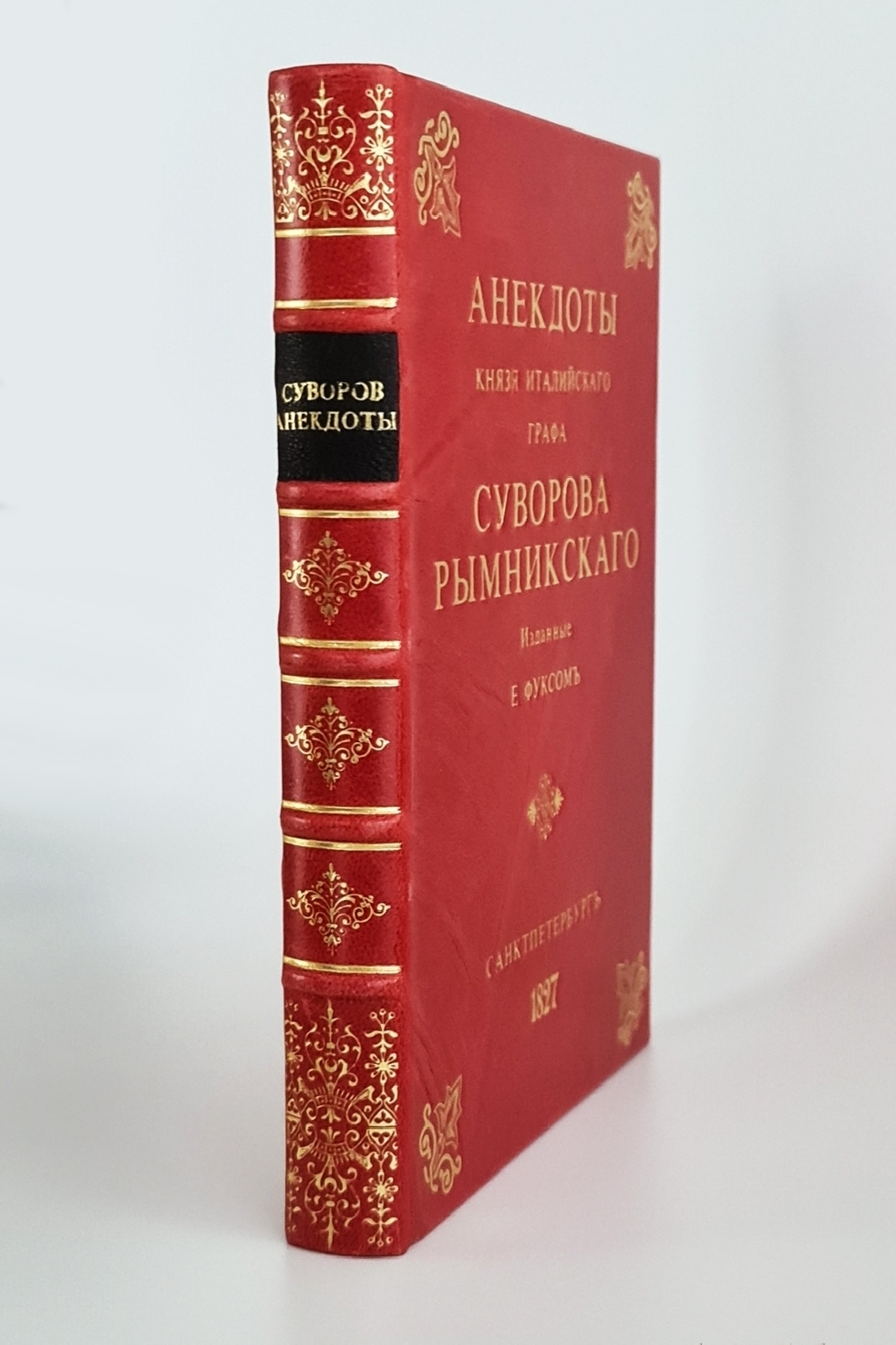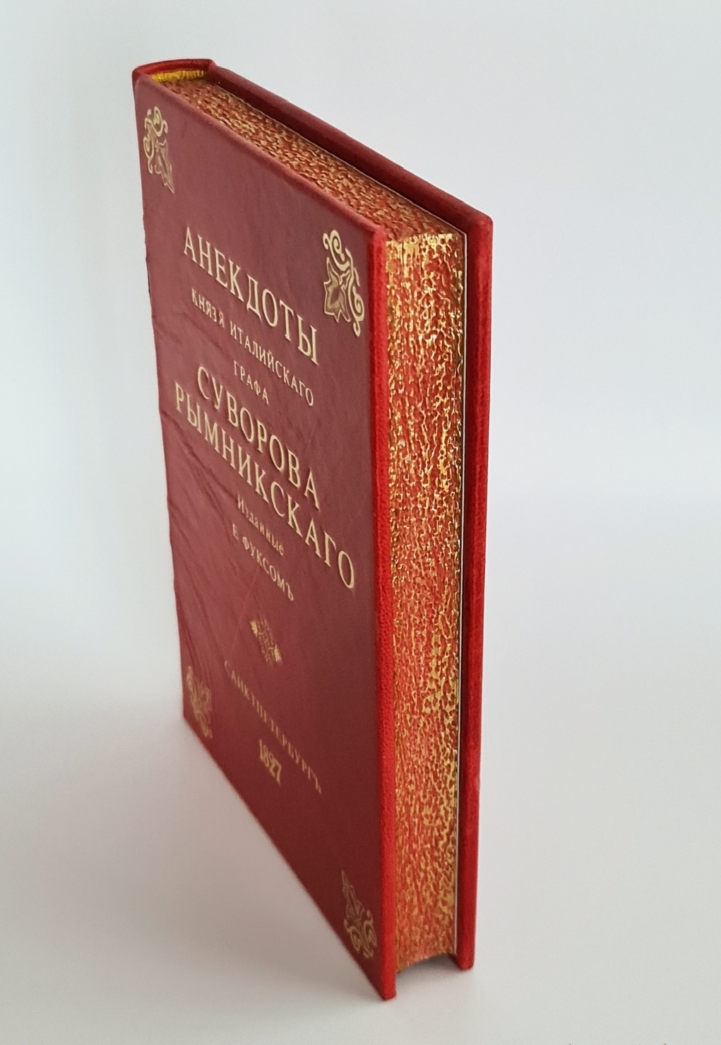 Репринт книги "Анекдоты князя италийского графа Суворова Рымникского". В красивом цельнокожаном переплете с тиснением золотом названия. Публикуется по изданию Е.Фукс. Анекдоты князя Италийского, графа Суворова-Рымникского. СПб, типография А.Смирдина, 1827. На задней крышке переплете вытеснена конгревным тиснением печать издателя - "Гражданинъ 2010". Обрез с трех сторон украшен золотым узором. Формат: 21,5x15 см. Качественная дизайнерская бумага. Подарочная книга.