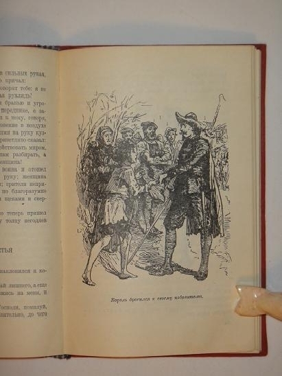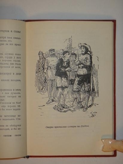 Экземпляр в издательском коленкоровом переплёте с тиснением имени автора и названием произведения на корешке. Художественно оформленная передняя крышка, тиснёная чёрной краской, и оригинальные иллюстрированные форзацы работы художника Н.Полозова. Семьдесят восемь рисунков в тексте, из которых восемь полностраничные, выполнены американским художником Э.Кэмблом.