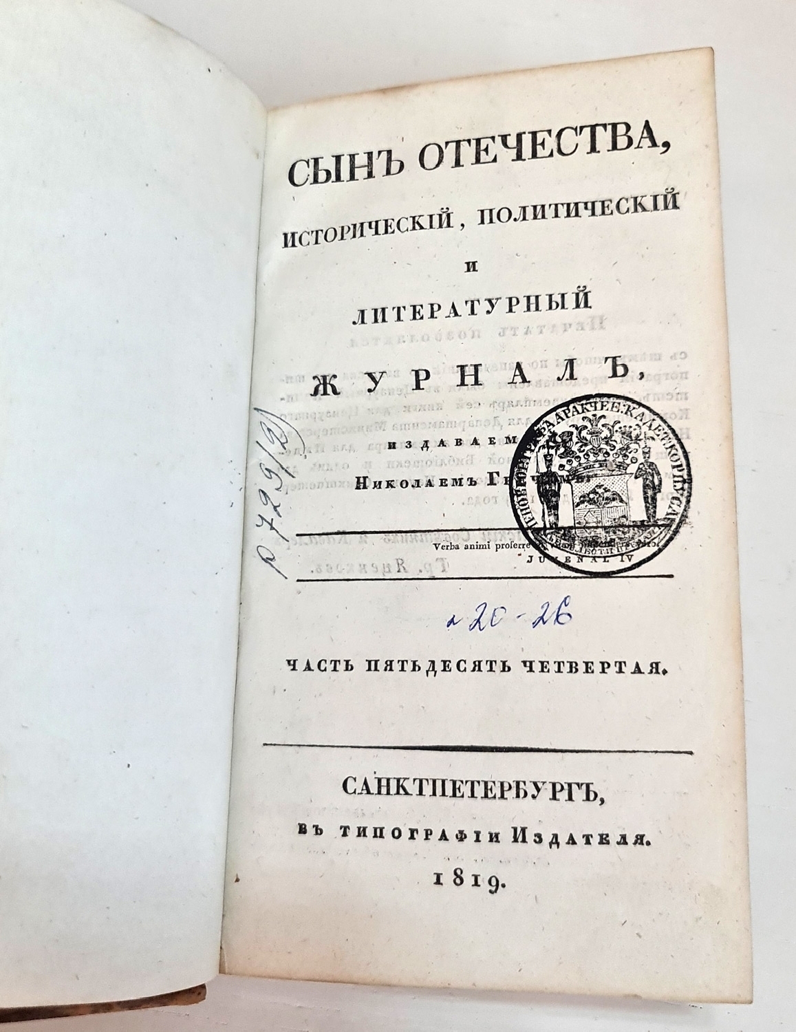 Название - Журнал "Сын Отечества". Часть 54