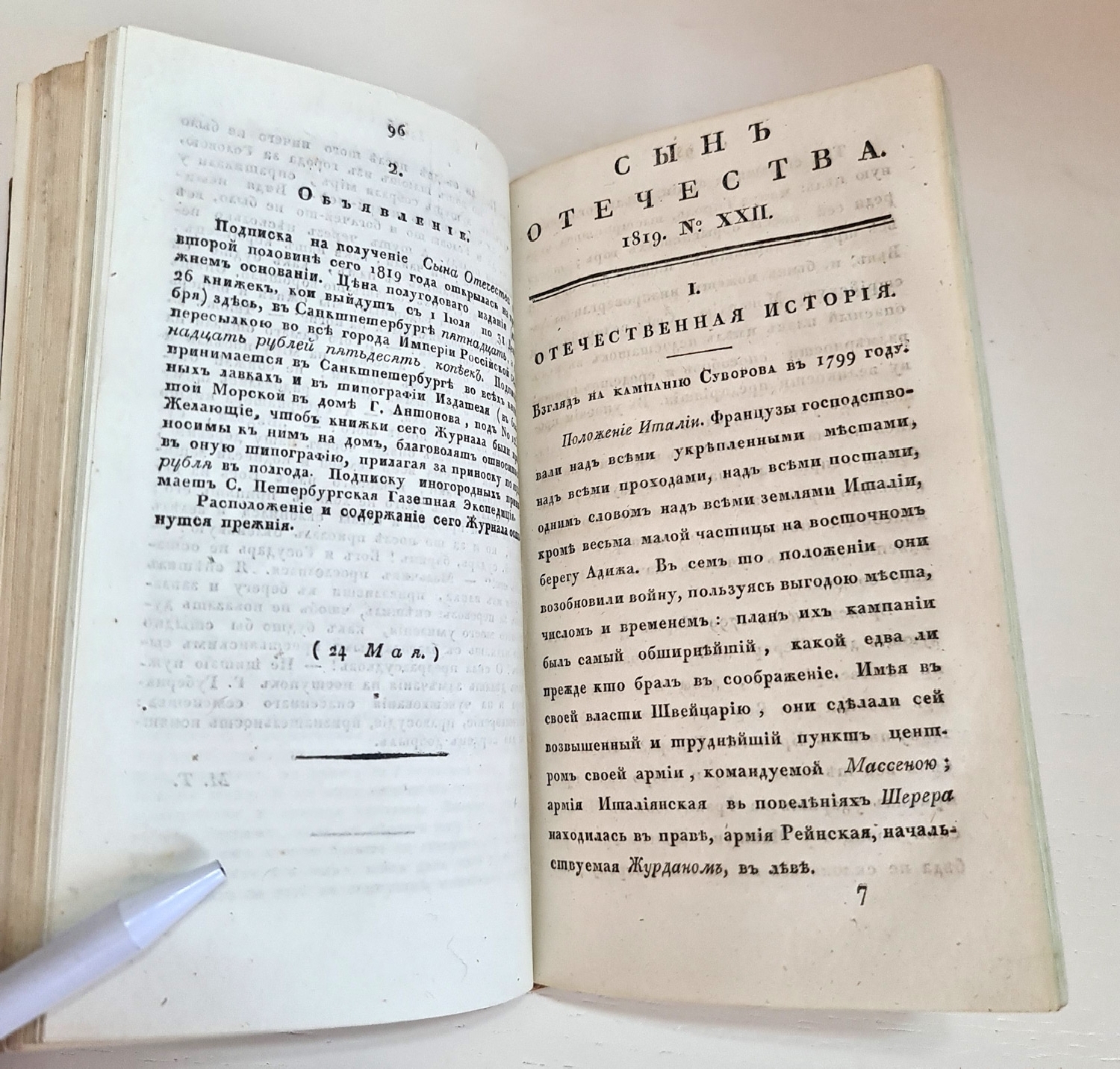 «Сын отечества» — один из старейших русских журналов, сыгравших важную роль в развитии общественной мысли начала XIX в. Был основан в 1812 г. Н.И. Гречем как исторический и политический орган, посвященный событиям Отечественной войны 1812 года. Выходил в Москве в 1812 — 1844, 1847 — 1852 гг. Изд.-ред. (в разное время) — Н.И. Греч, А.Ф. Воейков, Ф.В. Булгарин, О.И. Сенковский, А.Ф. Смирдин и др.