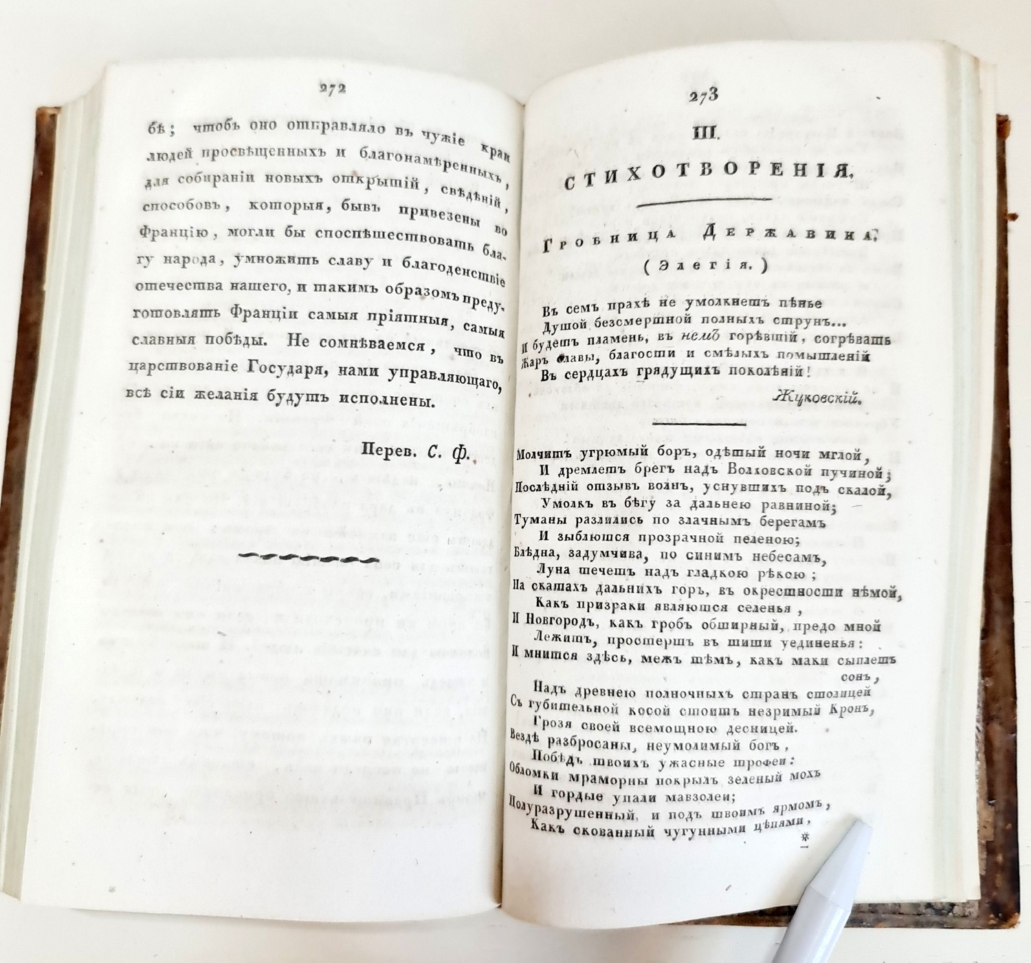 Экземпляр в цельнокожаном переплете с тиснением золотой рамочки по периметру. На форзаце имеется экслибрис из библиотеки Графа Аракчеева и "Без лести предан". 354 стр. Состояние отличное.