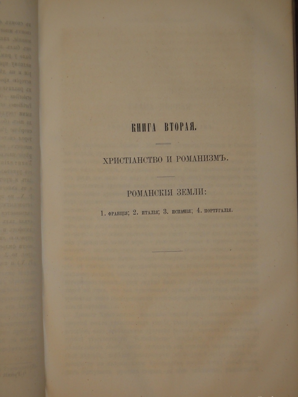 Книга 2. Романские земли. Глава 1. Христианство и романизм. Глава 2. Франция. Глава 3. Италия. Глава 4. Испания. Глава 5. Португалия. Прибавление ко второй книге: Молдаво-Валахский язык и литература.
