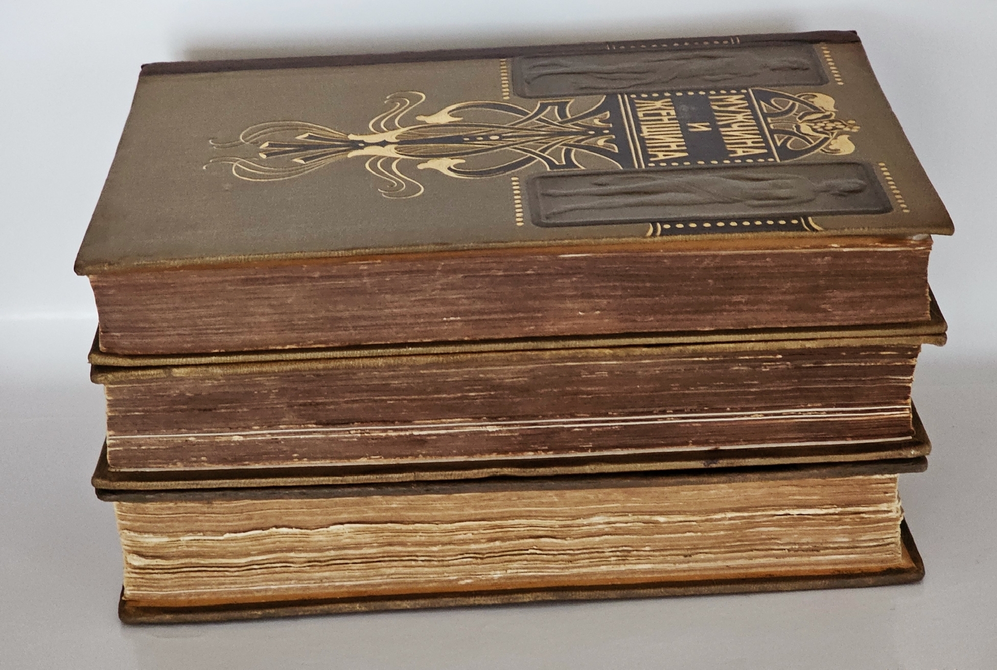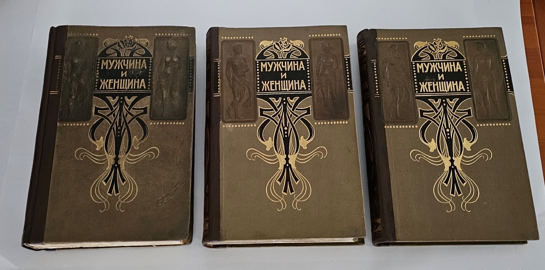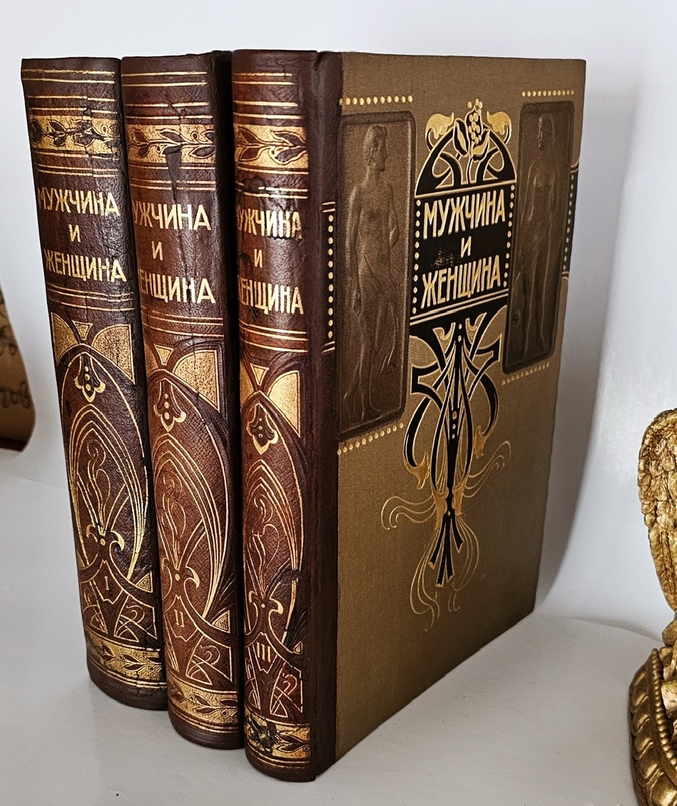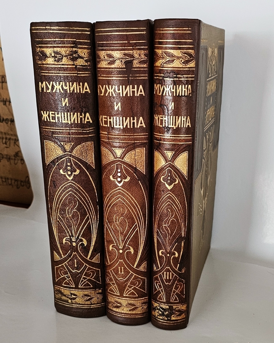 Три тома в издательских полукожаных переплётах с узорным золотым тиснением на корешках. На верхних крышках - барельефные рисунки. Мелованная бумага. Издание богато иллюстрировано. Полный комплект. Хорошая сохранность.