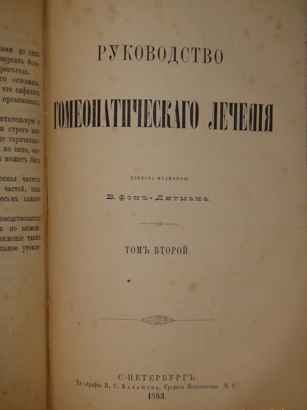 Первое и единственное прижизненное издание гомеопатического лечебника доктора В.А.Дитмана.