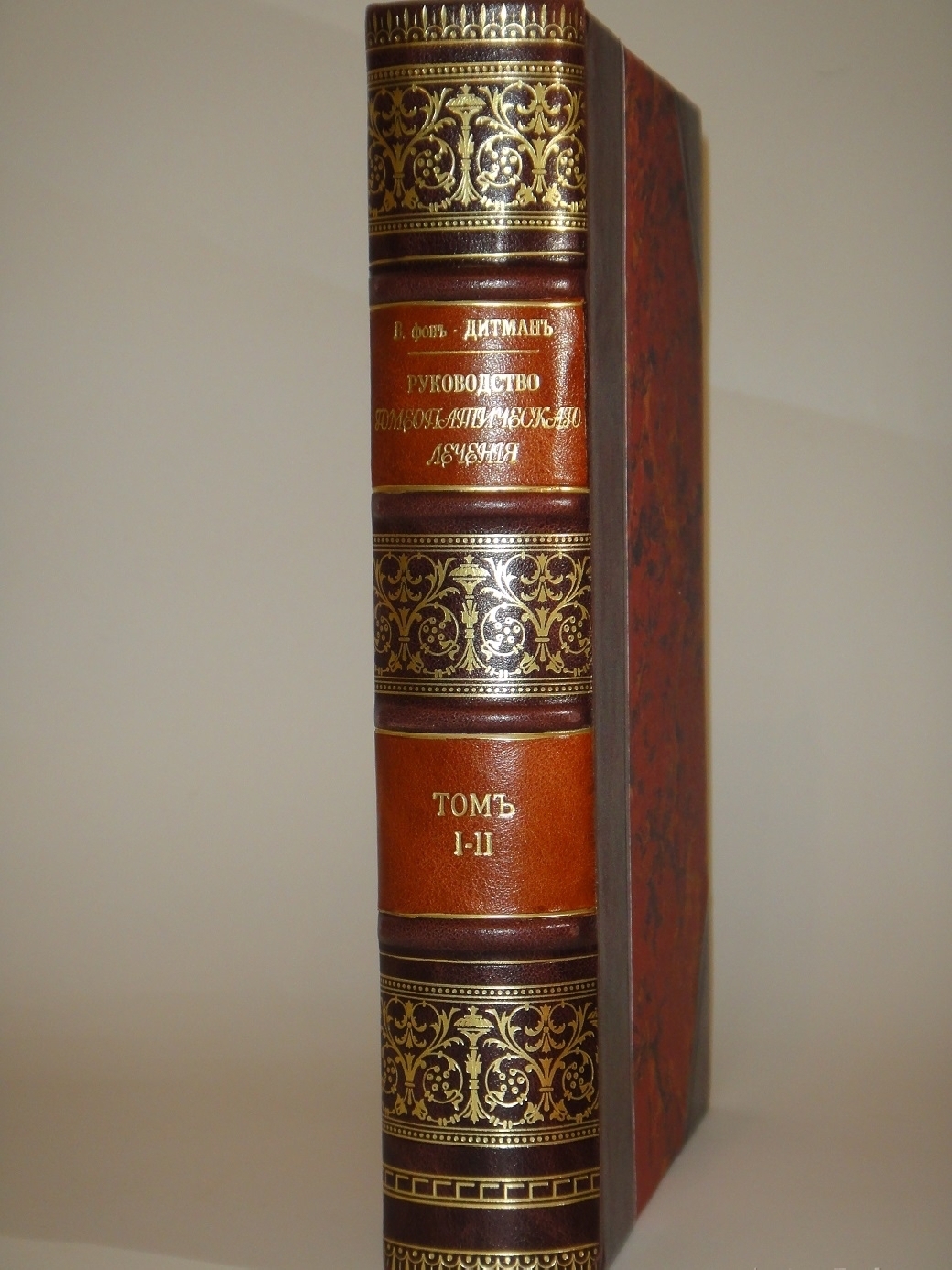 Том 1. 1882. Общая терапия и гигиена. Специальная патология и терапия: Глава I. Болезни головного и спинного мозга и нервной системы. - Глава II. Болезни головы. - Глава III. Болезни рта, зева и пищеприемника. - Глава IV. Болезни желудка, кишек и брюшины. - Глава V. Болезни печени. - Глава VI. Болезни селезенки. - Глава VII. Болезни мочевых органов. - Глава VIII. Болезни половых органов ( А. Болезни мужских половых органов; В. Сифилис ). 5, V, [3], 296 стр.