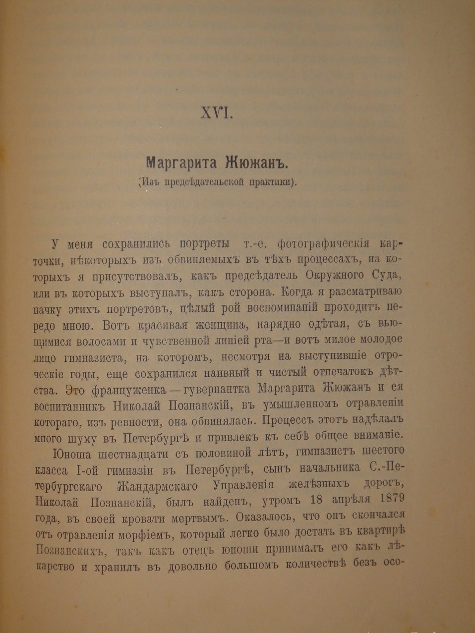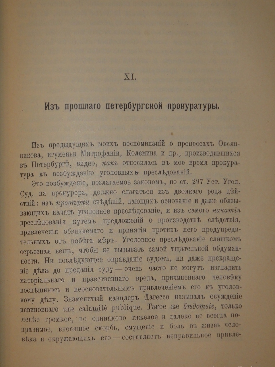 Том 1. Вместо предисловия. Из записок судебного деятеля: Дело Овсянникова; Из казанских воспоминаний; Из харьковских воспоминаний; Игуменья Митрофания; Дело о подделке серий; Игорный дом Колемина; Иван Дмитриевич Путилин; Из прокурорской практики; Темное дело; Приемы и задачи обвинения; Из прошлого петербургской прокуратуры; Прокуратура и администрация; Судебные следователи; Дело Гулак-Артемовской; Ландсберг; Маргарита Жюжан; Обвиняемые и свидетели; Сведущие люди и экспертиза; Душевно-больные; Гражданские дела; Мировые судьи; Александр Иванович Урусов; А.Л.Боровиковский и Н.Н.Мясоедов; Униатские дела; Штундисты; Пасторские дела. 1914. 656 стр.