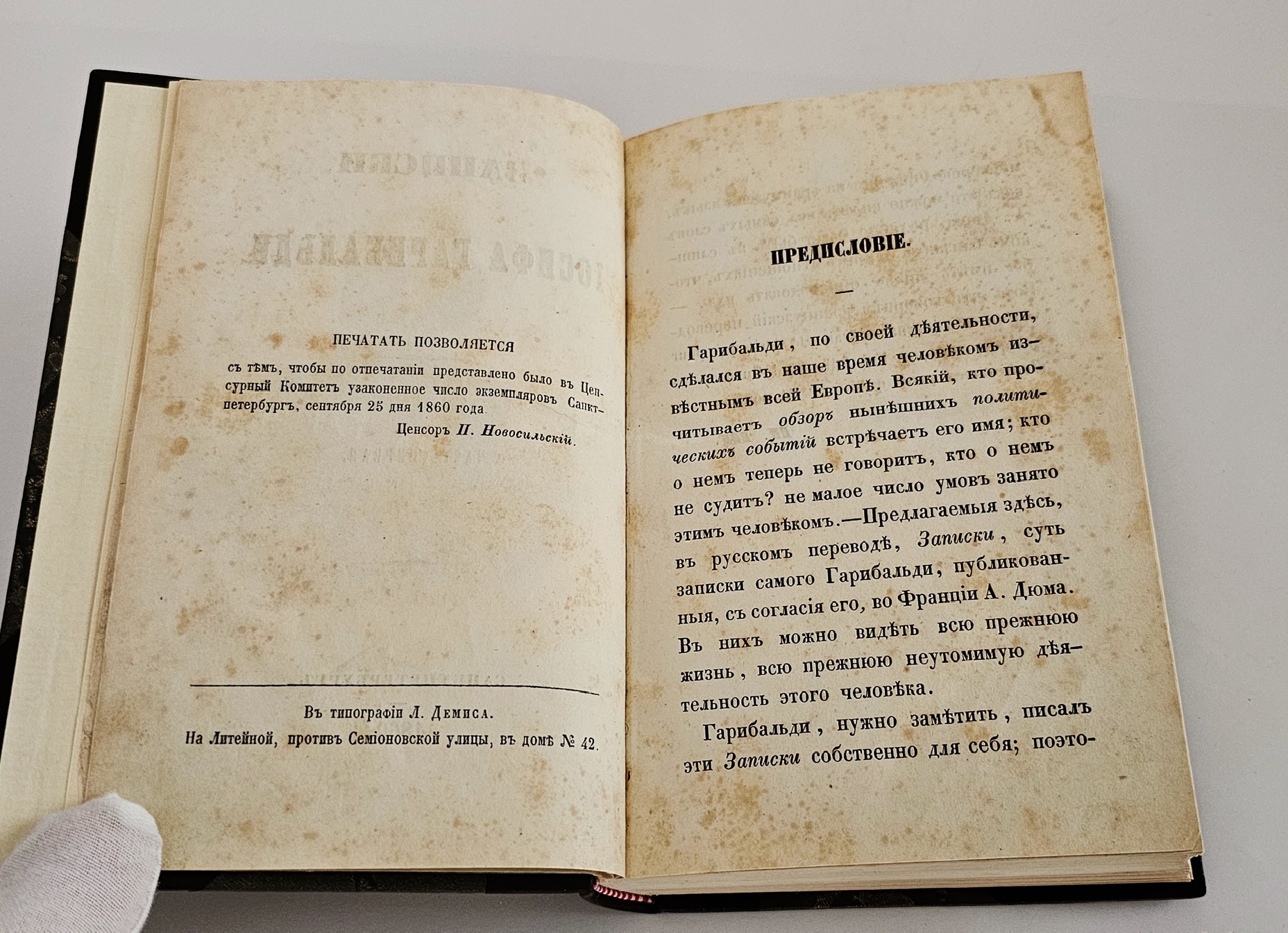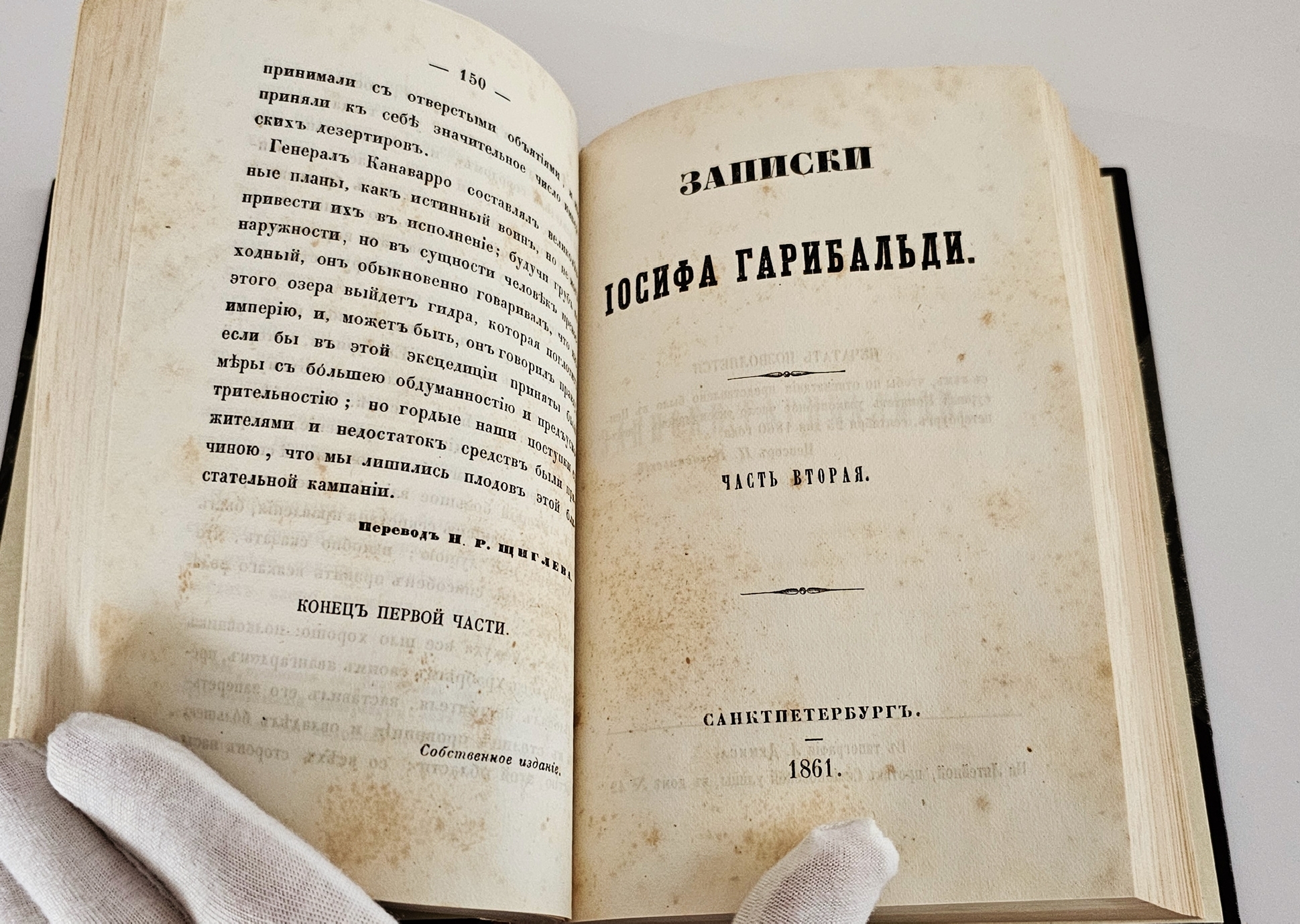 Книга в полукожаном переплете конца XX века. В первой части на фронтисписе размещён гравированный портрет Гарибальди — встречается редко. В книге 461 страниц: первая часть насчитывает 150 страниц (1860 год), вторая охватывает страницы 151–278 (1861 год), третья — 279–461 (1861 год). Формат книги уменьшенный: 17,5×12 см., что делало её удобной для чтения и переноски. Редкое издание.