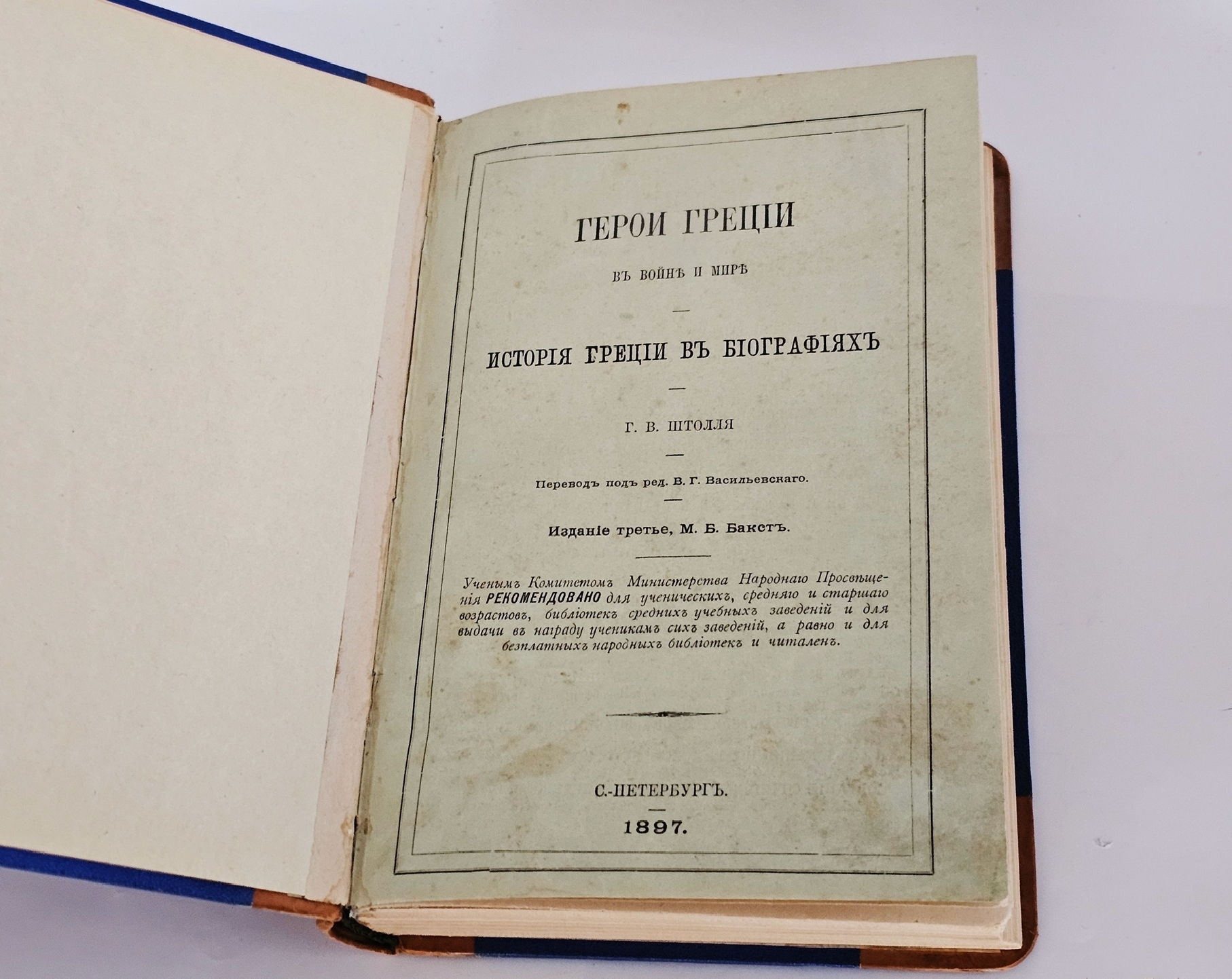Книга Г. В. Штолля «Герои Греции в войне и мире. История Греции в биографиях» вышла в Санкт‑Петербурге в 1897 году в издательстве М. Б. Бакст.