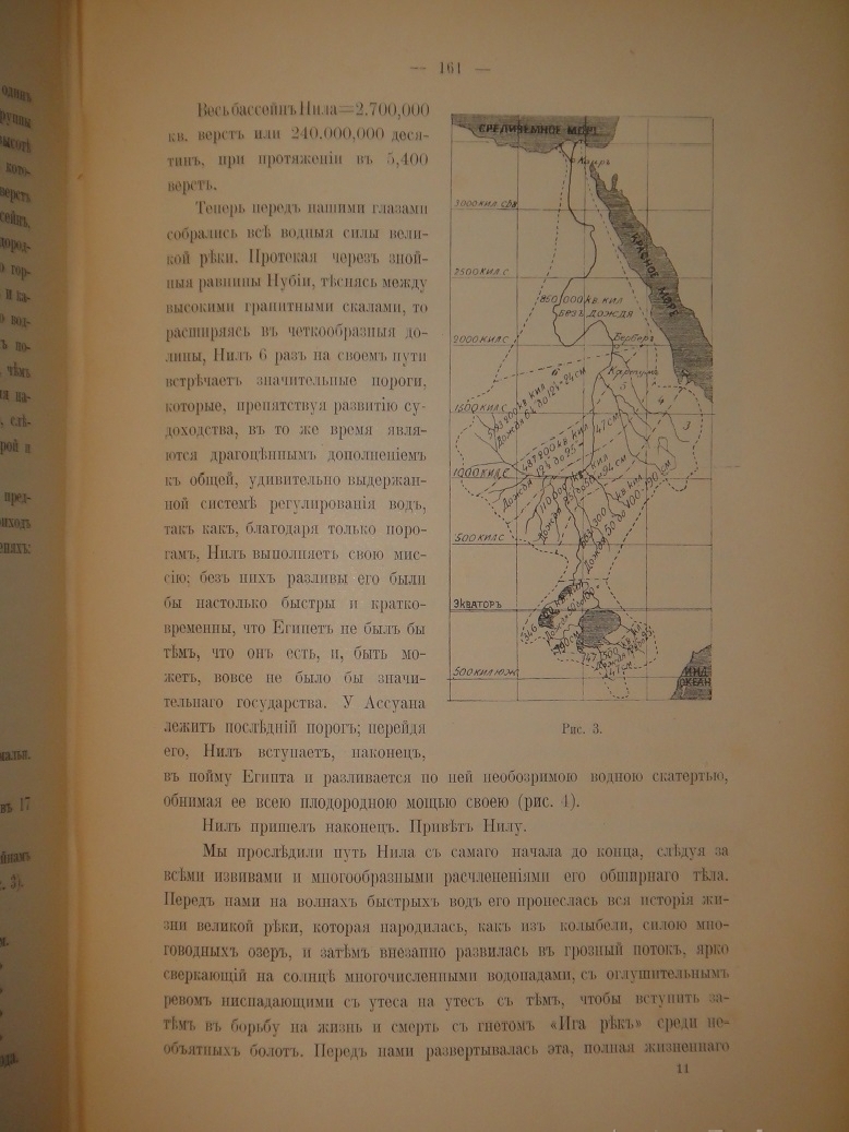 Издание напечатано на превосходной веленевой бумаге и содержит множество иллюстраций в тексте, в том числе полностраничных, с картами, диаграммами и картограммой на отдельных листах. Большая складная литографированная " Карта бассейна реки Нила " выполнена в первом и лучшем специализированном картографическом предприятии России " Картографическом заведении А.А.Ильина " в СПб.