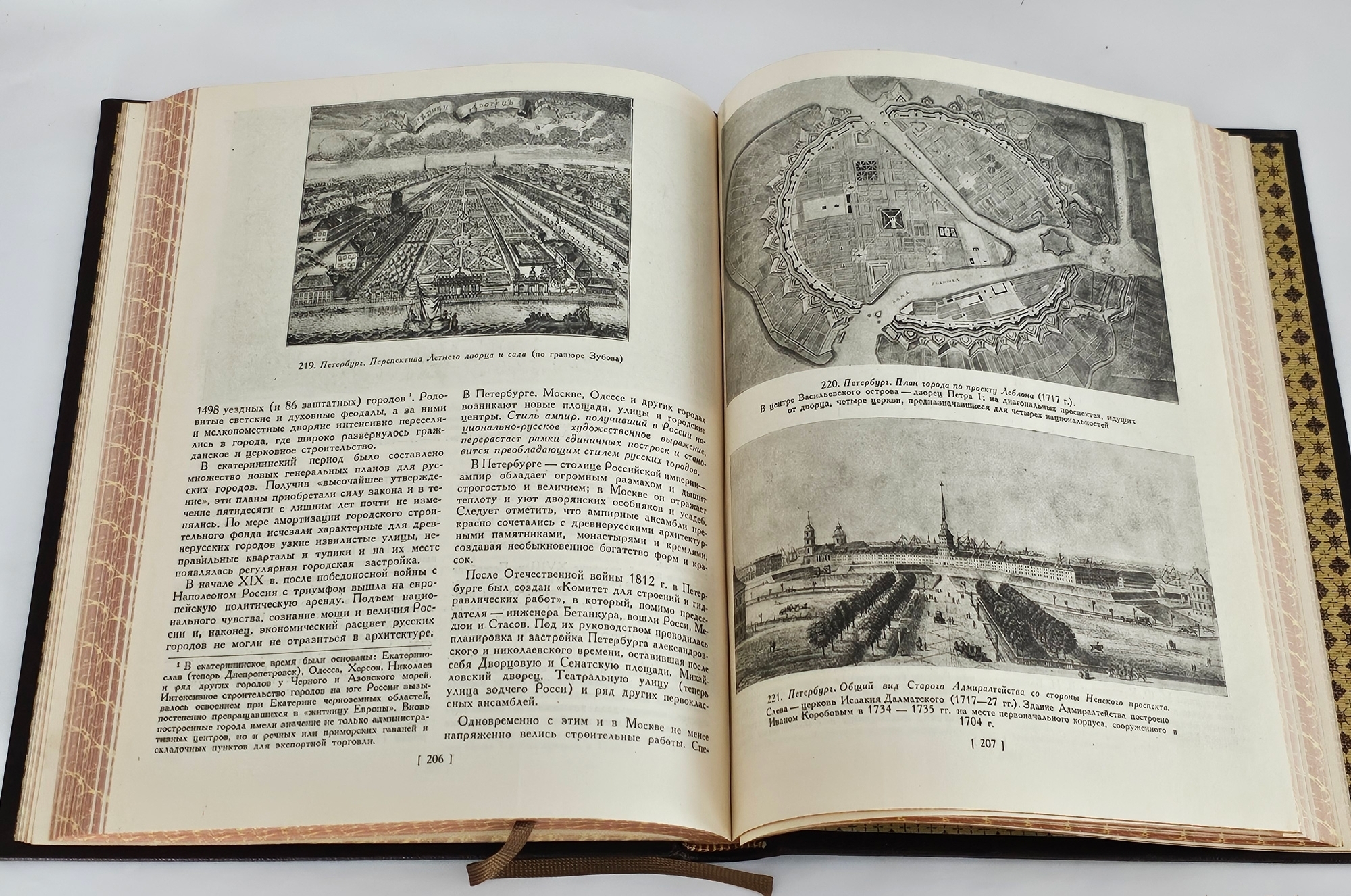 Объём издания. [1], 327 стр, 368 планов, схем и ил. в тексте и на вклейках. Формат увеличенный: примерно 25,5×20,5 см. Текст на русском языке сопровождается множеством тоновых фотоиллюстраций, планов, схем и чертежей — они помогают наглядно представить развитие градостроительных идей и решений.