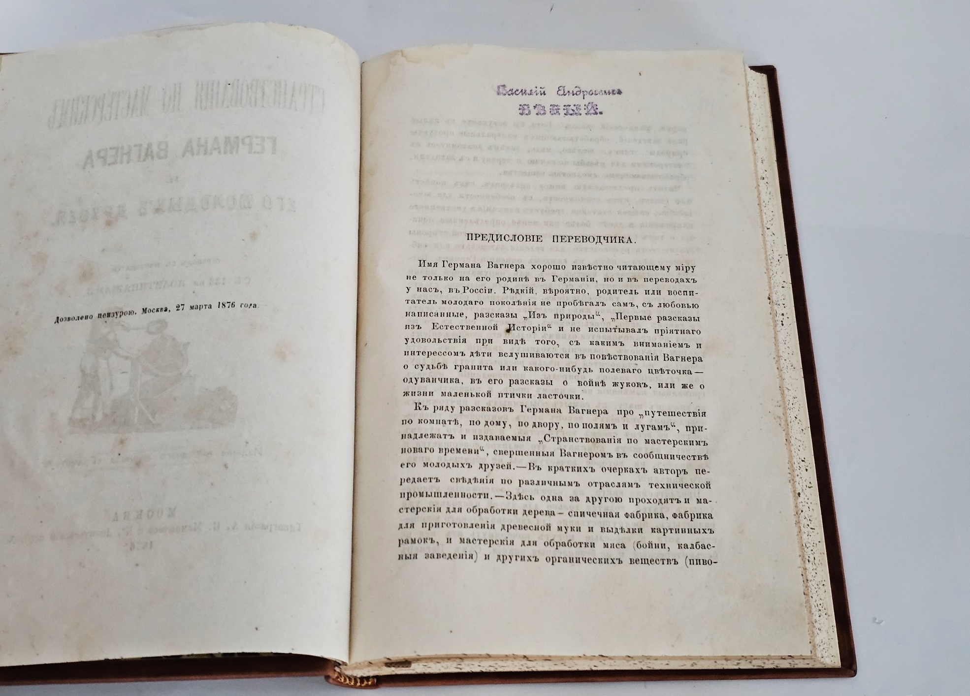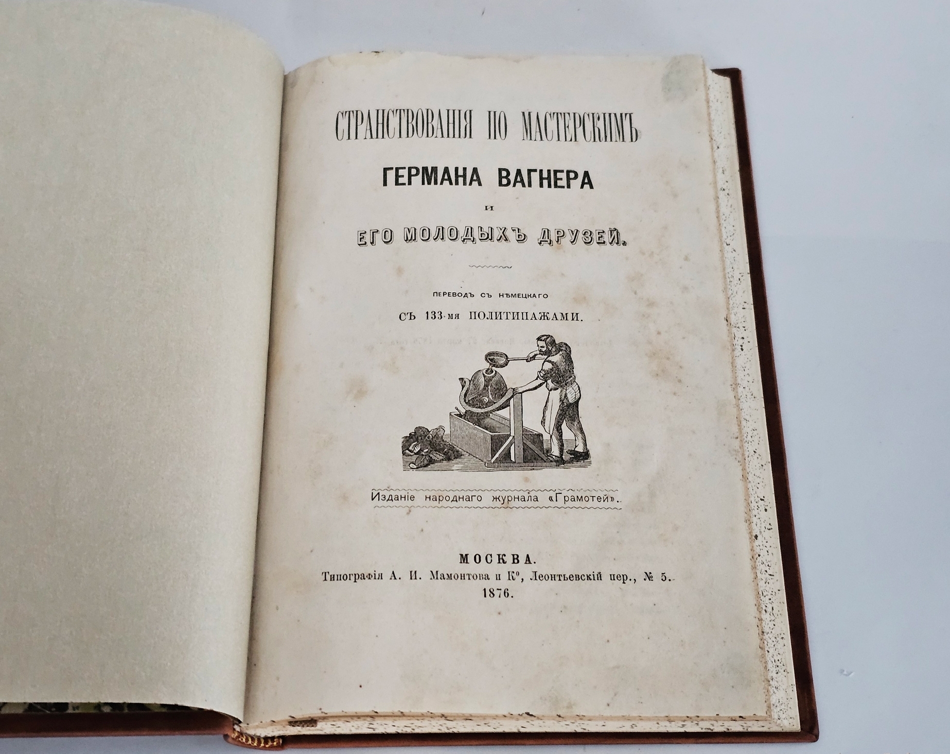 Книга «Странствования по мастерским Германа Вагнера и его молодых друзей» (1876) — это познавательное издание, знакомящее читателя с различными ремёслами и производствами. Издание подготовлено народным журналом «Грамотей»; отпечатано в типографии А. И. Мамонтова и К°.