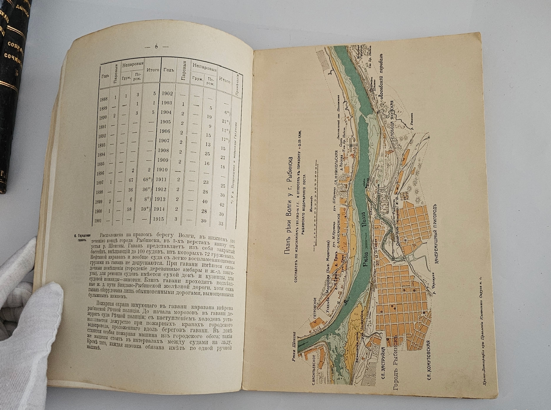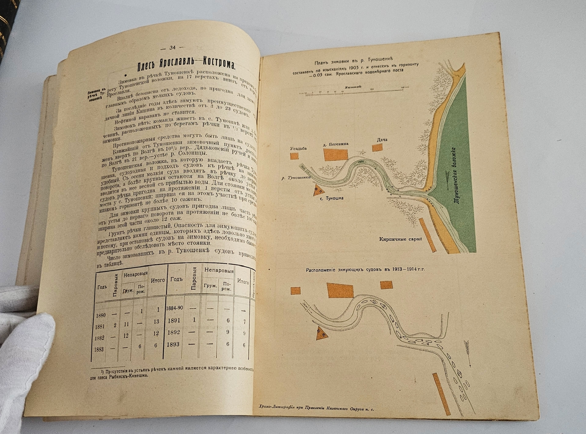 Редкость. Провинциальное малотиражное издание описывающее затоны и зимовки на Волге от Ярославля до Нижнего Новгорода, с цветными литографированными планами.