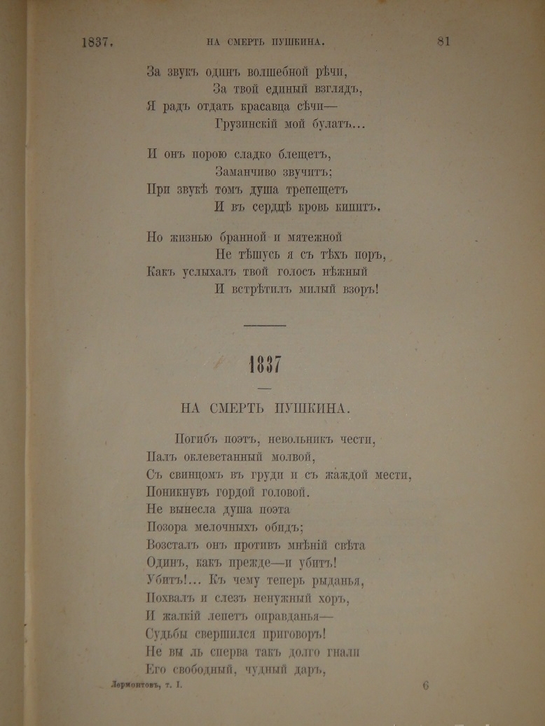 Том 1. Биографический очерк. Стихотворения и поэмы. 1831-1841. - Роман " Герой нашего времени ". - Письма и др. Примечания к первому тому. XXXVI, 628 стр.; портрет, два факсимиле.