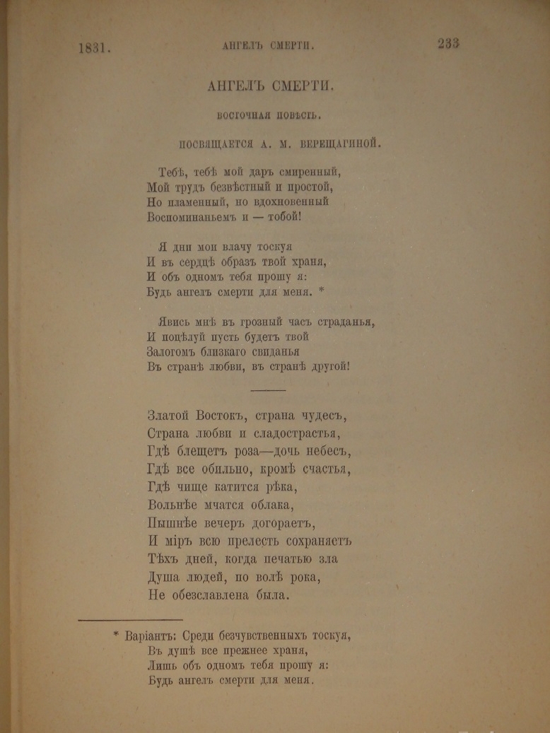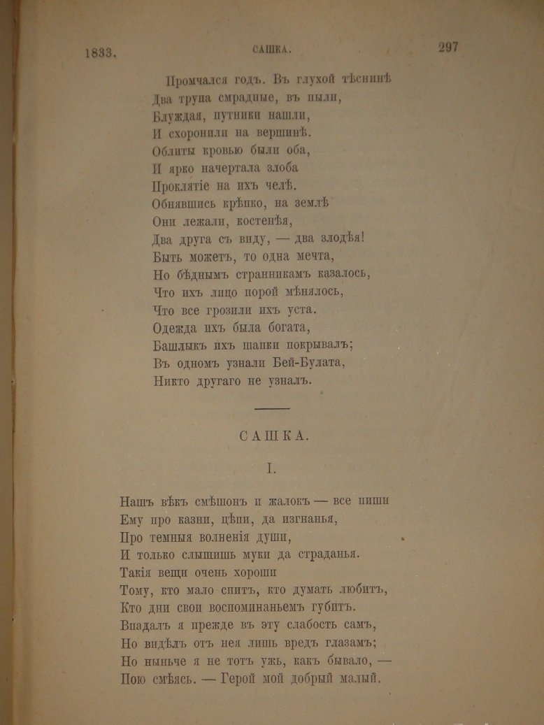 Два года слушал Лермонтов лекции в университете, затем расстался с ним и поступил в петербургскую " Школу гвардейских подпрапорщиков и кавалерийских юнкеров ", откуда в 1834 году был выпущен корнетом лейб-гвардии гусарского полка. К этому времени Лермонтовым было написано немало прекрасных стихов, но знали о них только очень немногие. В 1830 году в четвёртой книге журнала " Атеней " впервые в печати появилось его стихотворение " Весна " ( " Когда весной разбитый лёд... " ). В 1835 году в августовской книжке " Библиотеки для чтения " была напечатана первая его поэма " Хаджи-Абрек ". Оба эти произведения остались, однако, незамеченными.