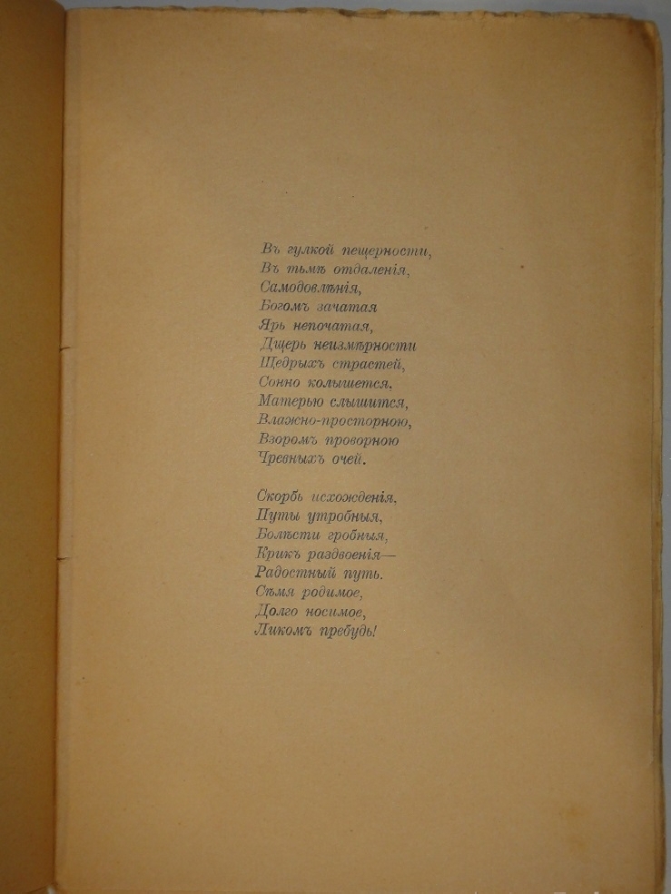 Книга в великолепных издательских литографированных обложках работы художника Николая Рериха. Напечатана на высококачественной бумаге верже с видимыми на просвет контурами филиграни.