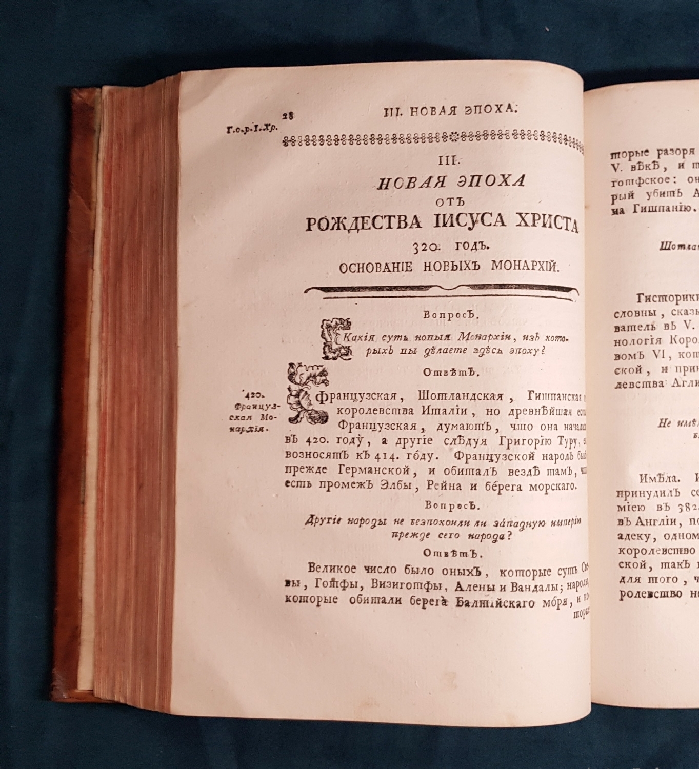 Это свод исторических сведений, составленный Дмитриевым-Мамоновым в виде вопросов и ответов по сочинениям французских историков (история Европы и Китая), а также по Нестеровой летописи, трудам Ломоносова и Ф. А. Эмина.