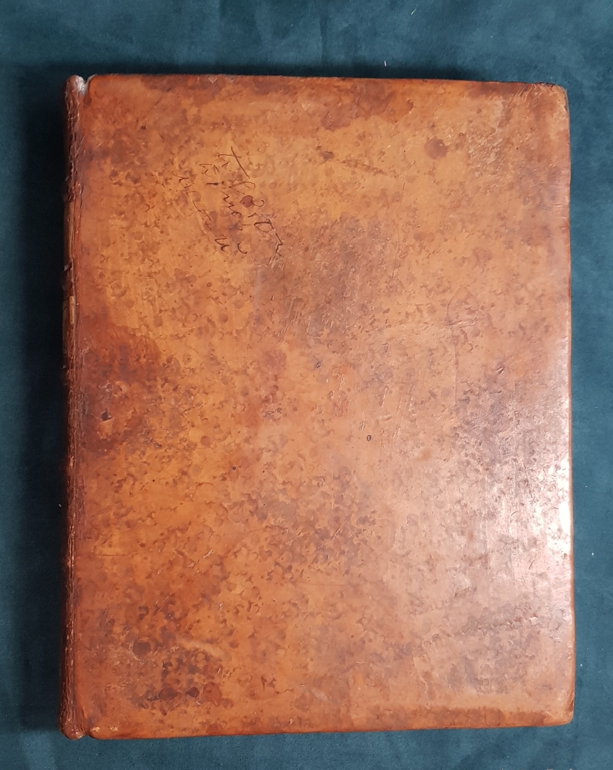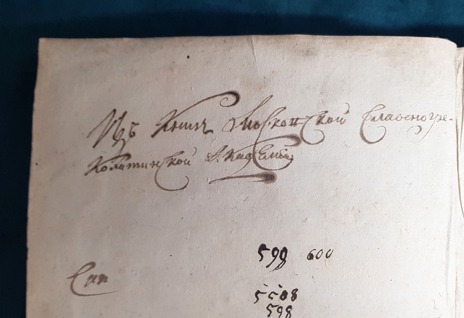 В цельнокожаном переплете эпохи. Состояние отличное. Формат увеличенный 24,5х20х4,5 см. Орешковыми чернилами написано - "Из книг московской славяно-греко-латинской Академии".