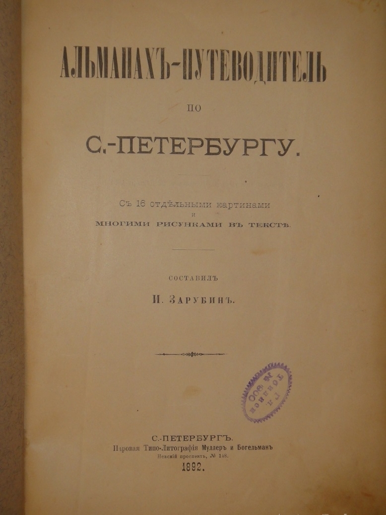 С.-Петербург, Паровая Типо-Литография Муллер и Богельман, 1892г. Редкость.