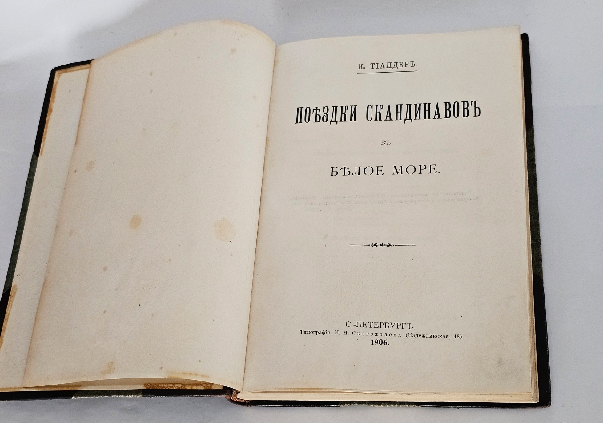 Книга Карла Фёдоровича Тиандера «Поездки скандинавов в Белое море» вышла в Санкт‑Петербурге в 1906 году в типографии И. Н. Скороходова.