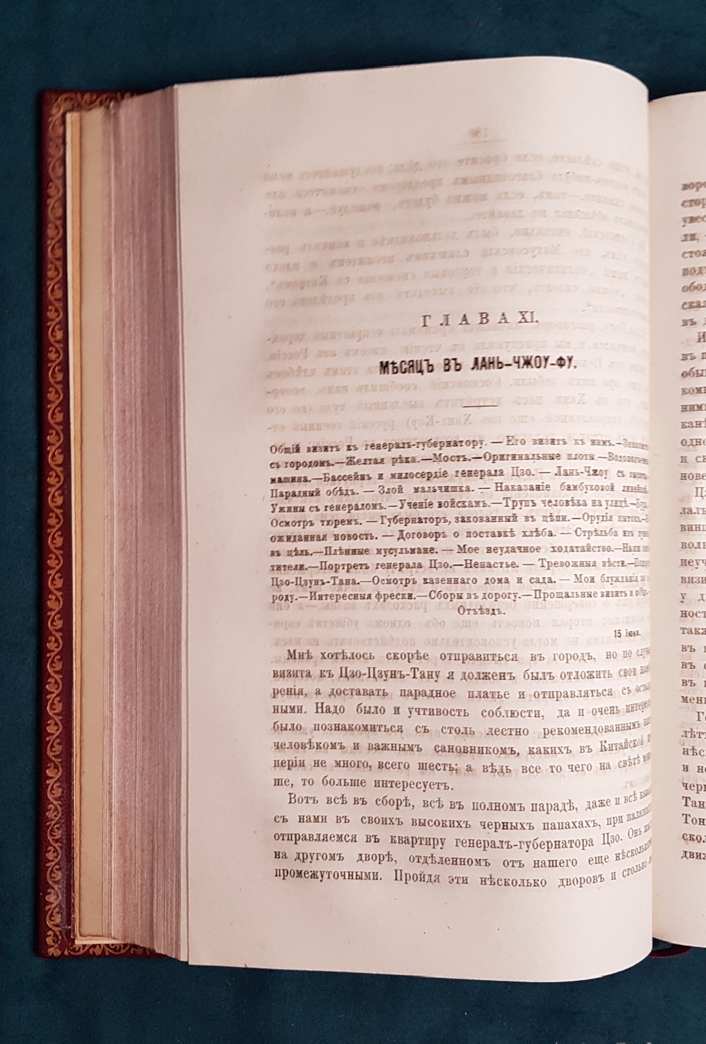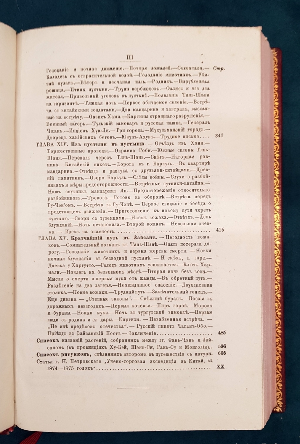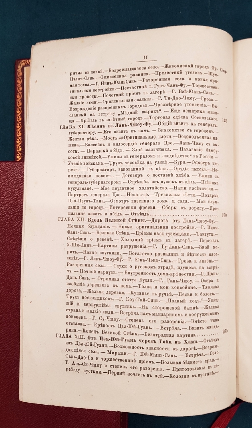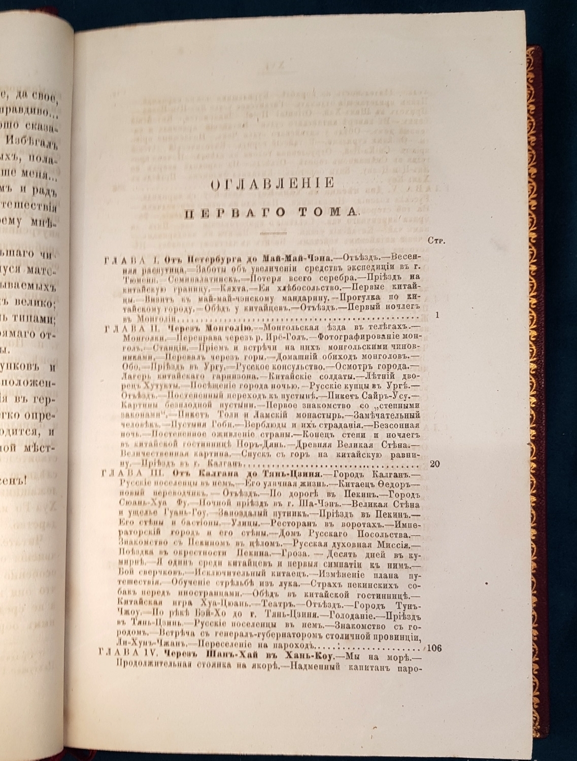 Автор представляет ход экспедиции день за днем, уделяя большое внимание быту и различным трудностям путешественников. Он рассказывает о природе Китая, Монголии и Тибета, жителях этих стран, их традициях и обычаях, семейном быте, административном устройстве, поведении чиновников и духовенства, об опиумных курильнях, чесоточных соседях, отрубленных головах, дешевом труде, жалких людях, удивительных домах и другой китайской экзотике.