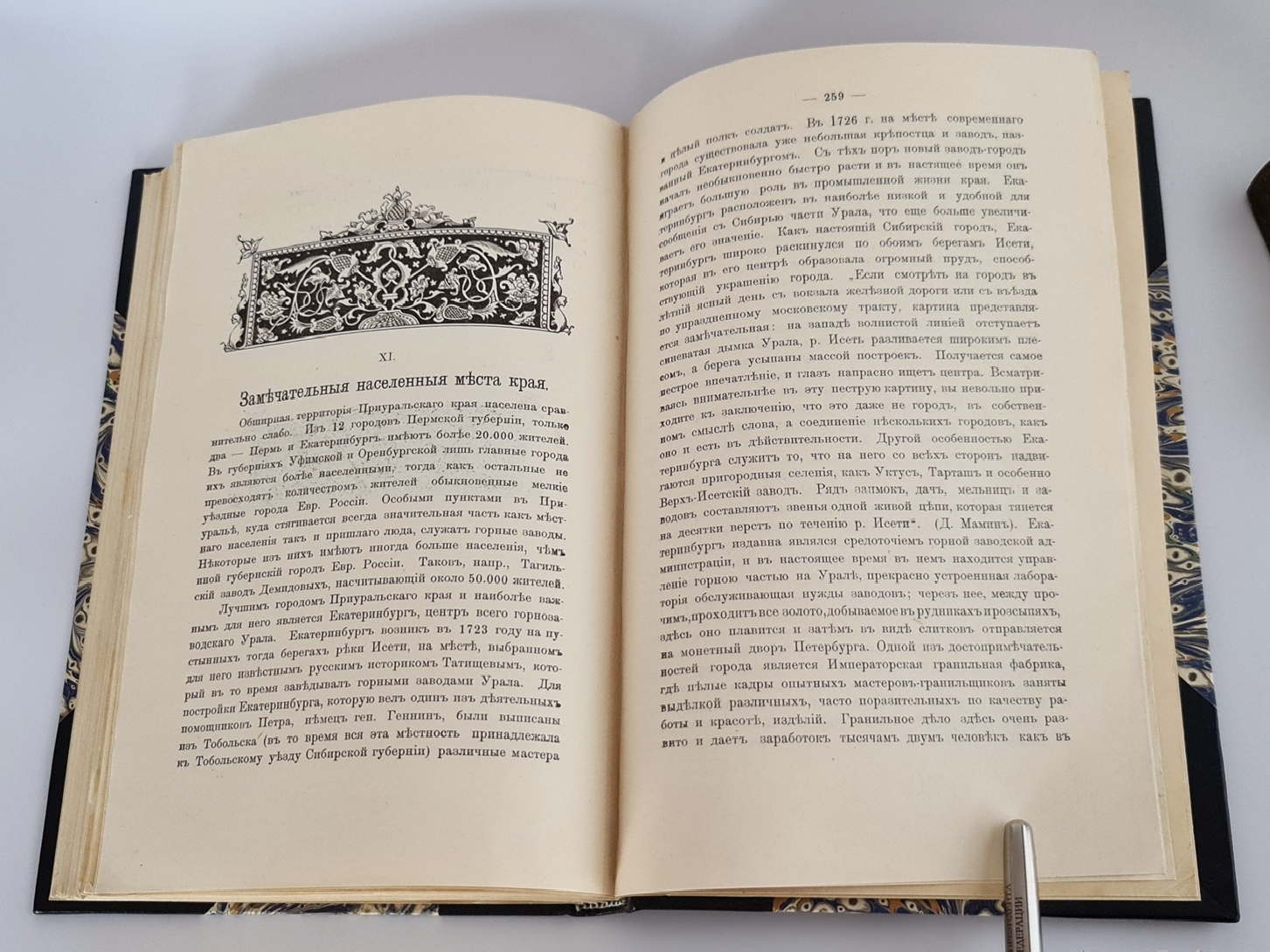 Содержание: Приуральский край. - Уральский хребет. - Реки. - Климат и почва. - Растительный и животный мир. - Русское население: Приуралье в доисторическую и историческую эпоху. - Инородческое население: Пермяки. - Мещеряки. - Башкиры. - Тептяри. - Хозяйственная деятельность населения. Земледелие, скотоводство, лесной промысел. - Горное дело и обрабатывающая промышленность. - Пути сообщения и торговля. - Замечательные населенные места края.