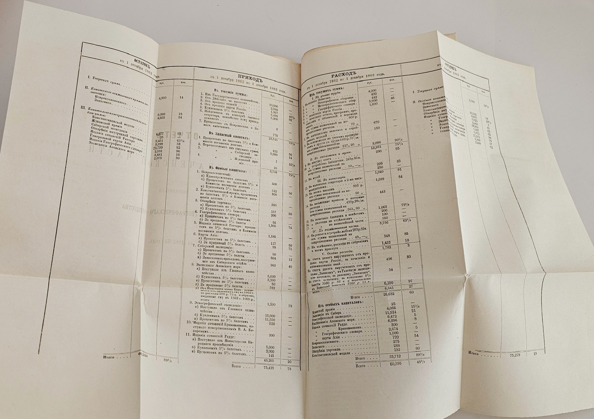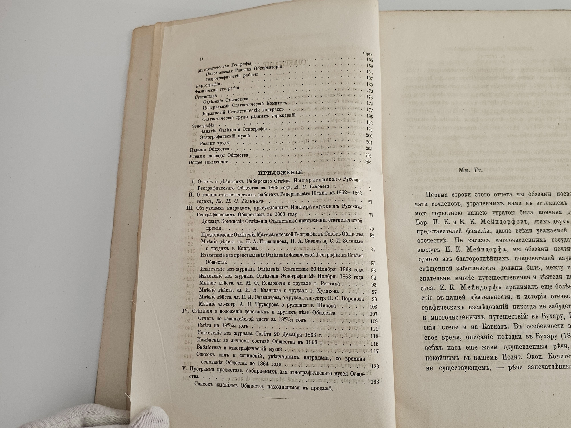 - Отчёт Императорского Русского географического общества за 1863 год ([2], II, 3–211, [2], 146 с.) — обзор научной и экспедиционной деятельности общества, итоги географических исследований, сведения о развитии географических знаний в России того периода.