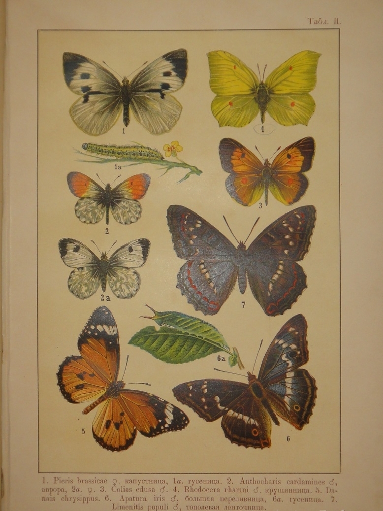 Содержание: Введение. - Подразделение бабочек. - Строение тела бабочек. - Размножение бабочек. - Распространение, образ жизни бабочек, польза и вред, приносимые ими. - Ловля бабочек. - Воспитывание бабочек. - Устройство собрания. - Коллектирование во время поездок. Дневник. - Обзор европейских семейств и родов. - Описание важнейших видов бабочек: I. Rhopalocera. Дневные бабочки; II. Sphinges. Бражники; III. Bombyces. Шелкопряды; IV. Noctuae. Ночницы, или совки; V. Geometrae. Пяденицы. - Указатель русских названий. - Указатель латинских названий.
