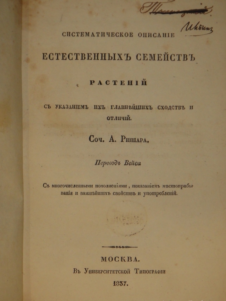 Часть 2. Систематическое описание естественных семейств растений с указанием их главнейших сходств и отличий. С многочисленными пополнениями, показаниями местопребывания и важнейших свойств и употреблений. 1837. VIII, 398 стр. 43 листа иллюстраций ( два в цвете ) с поясняющими подрисуночными подписями.