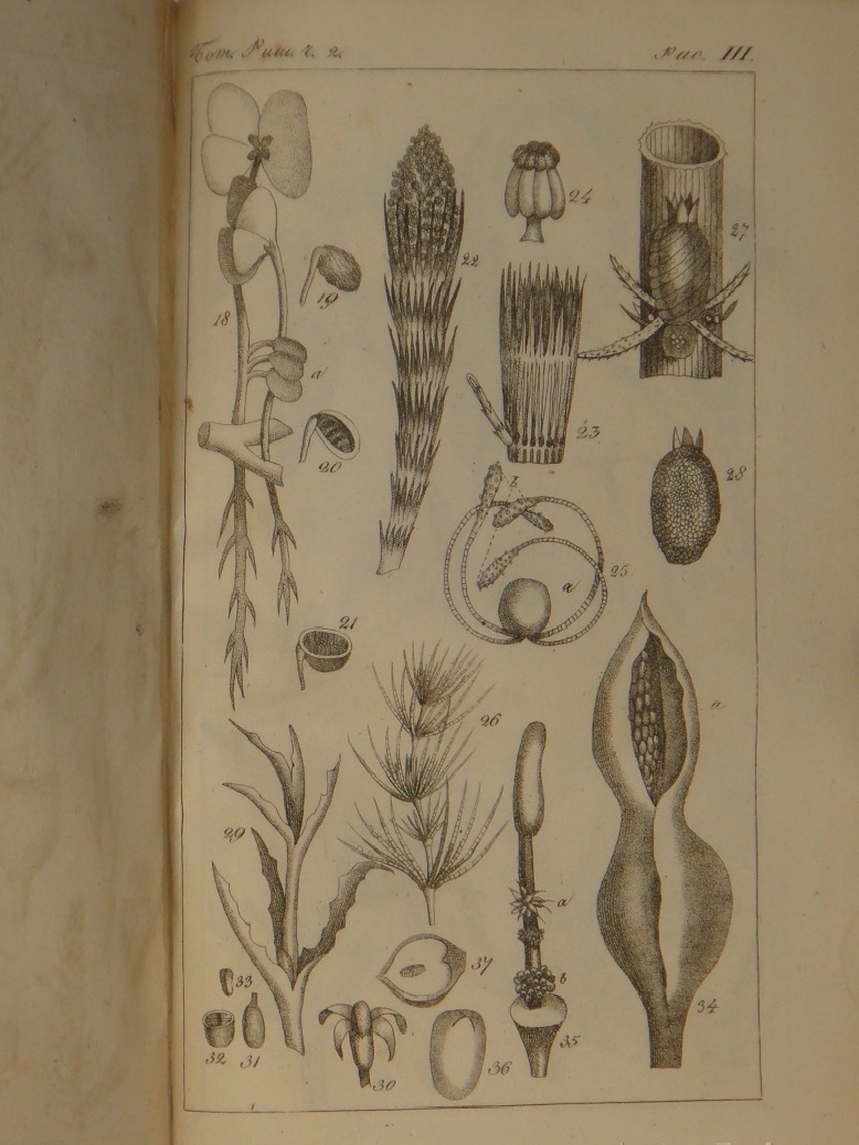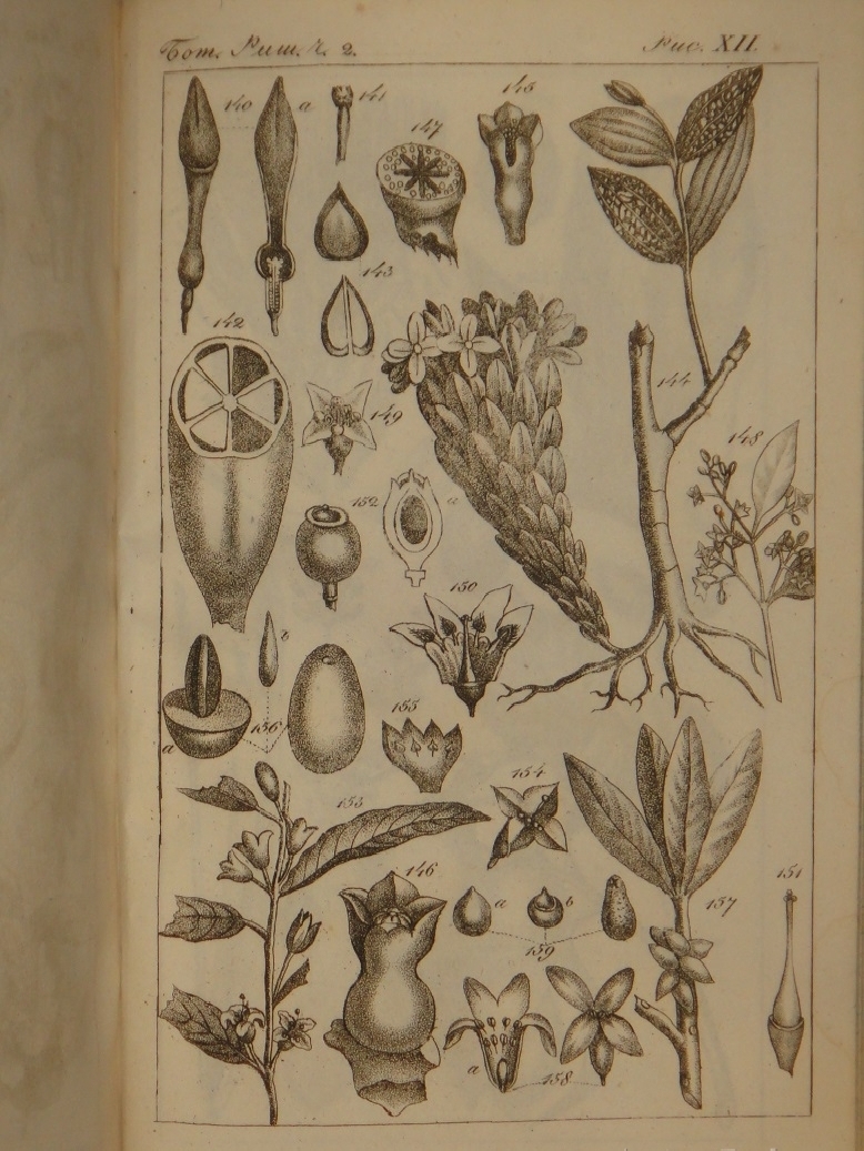 Часть 1. Органография с физиологией и таксономия. 1835. XXII, 571, V стр. 5 складных таблиц и 14 листов иллюстраций с поясняющими подрисуночными подписями.