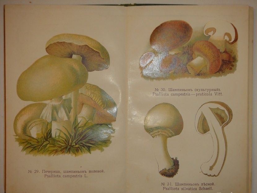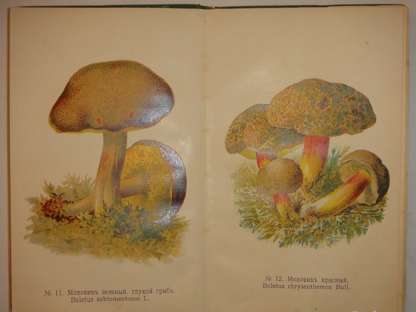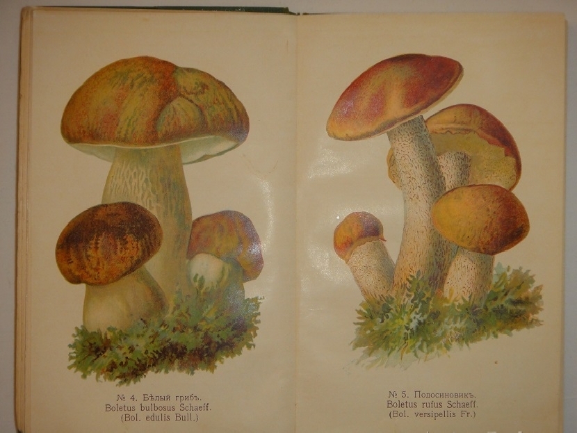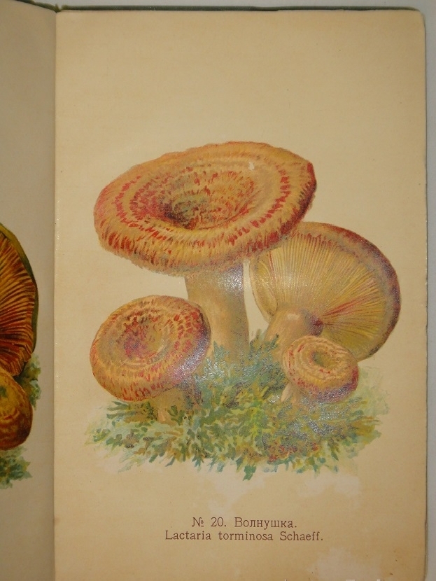 Очень красивое издание, выполненное в лучшей типографии Российской империи - " Товариществе скоропечатни А.А.Левенсон ", получившей высший коммерческий статус Поставщиков Двора Его Императорского Величества. Одно из первых русских пособий для любителей грибной охоты.