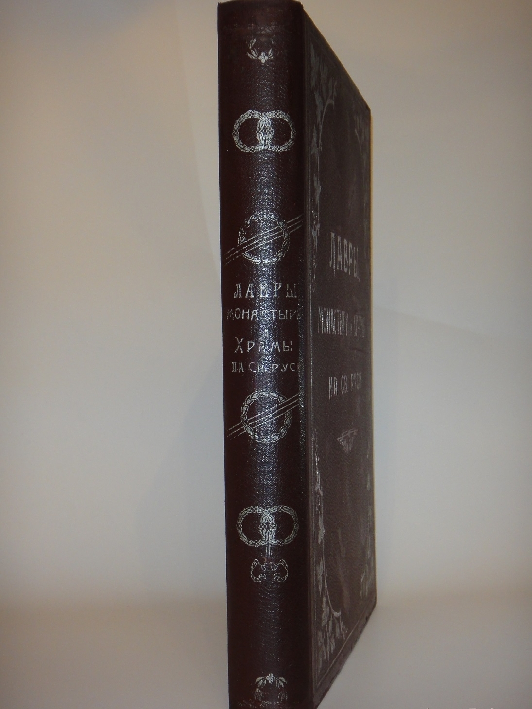 Экземпляр в оригинальном издательском цельноколенкоровом переплёте с серебряным художественным тиснением на корешке и передней крышке, выполненным в стиле модерн. Цветные форзацы. Трёхсторонний золотой обрез. Шёлковое ляссе.