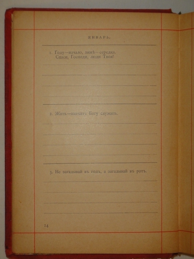 В ежедневнике мудрые мысли распределены по дням года. Каждый месяц посвящён той или иной теме: вере, родине, любви, детям, добре, труде и др. Для каждого дня месяца автором подобраны подходящие по тематике месяца одна русская народная пословица и по одной цитате из русских и иностранных авторов. Всего сборник содержит 1100 пословиц и поэтических цитат.
