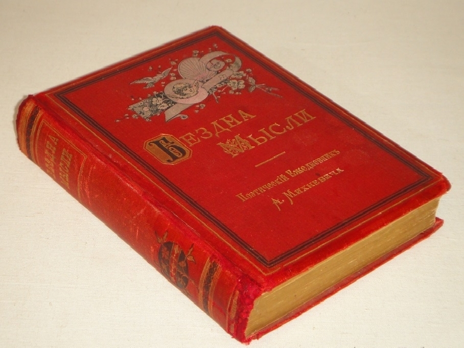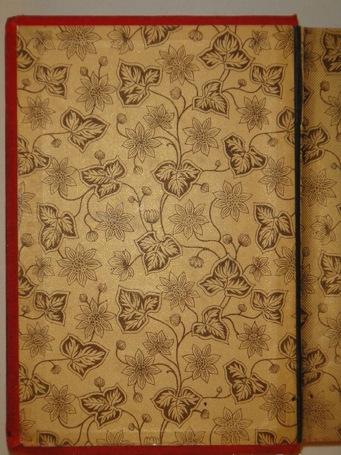 Хромолитографированные форзацы с мотивами растительного орнамента. Трёхсторонний золотой обрез. Шёлковое ляссе.