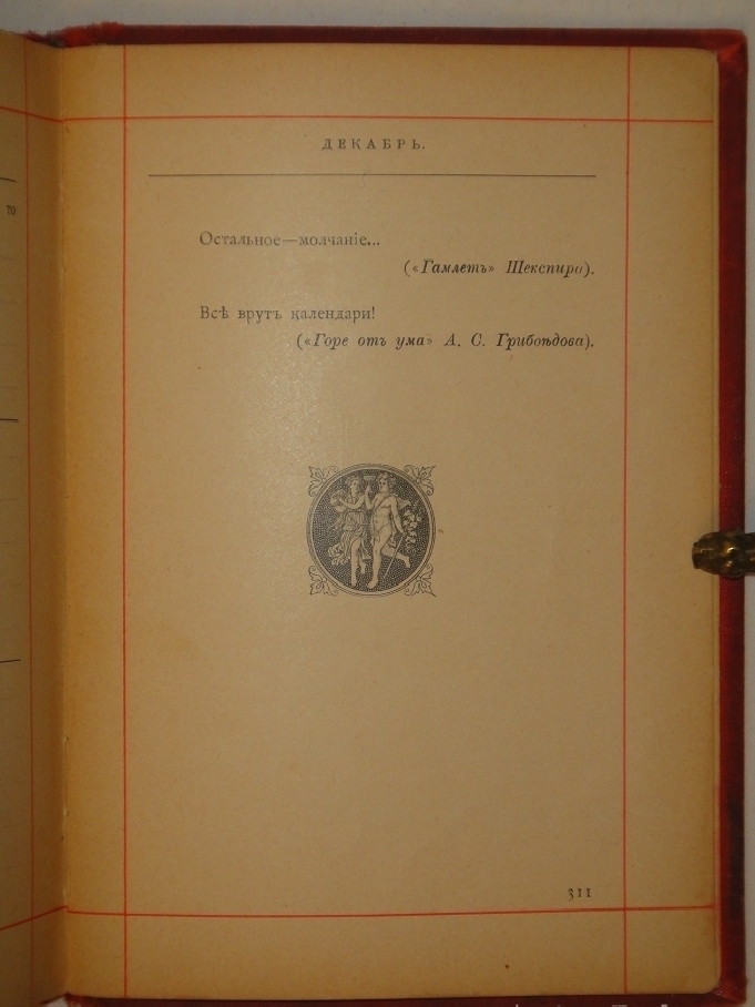 Книга напечатана на высококачественной мелованной бумаге и украшена многочисленными аллегорическими заставками. На титульном листе помещены строки из " Элегии " А.С.Пушкина: " День каждый, каждую годину Привык я думай провождать..."